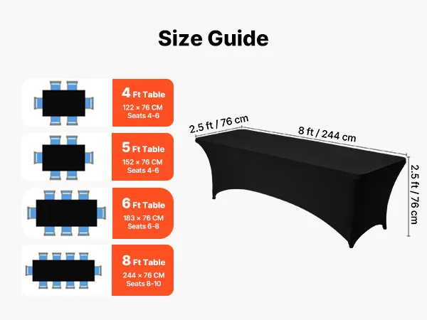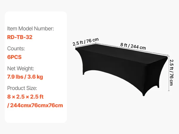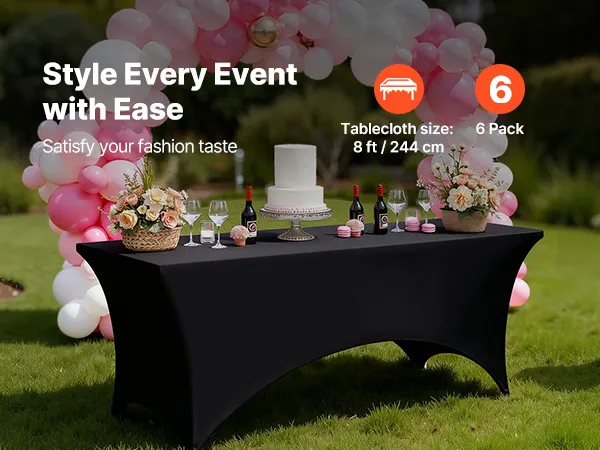 Spandex-Tischdecken-Set: Unser hochwertiges Tischdecken-Set schützt effektiv vor Verschüttetem, Flecken und Kratzern. Das Paket enthält 6 schwarze rechteckige Polyester-Tischdecken, passend für 8 Fuß (2,44 m) lange rechteckige Tische. Bitte messen Sie Ihre Tischgröße vor dem Kauf