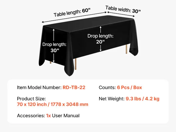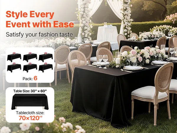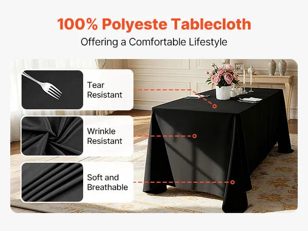 VEVOR 6 x Tischdecke Tischwäsche 1778x3048 mm, wiederverwendbarer Tischdeckenschutz, maschinenwaschbares Tischtuch aus Polyestergewebe für Hochzeiten Bankette formelle Veranstaltungen, Schwarz