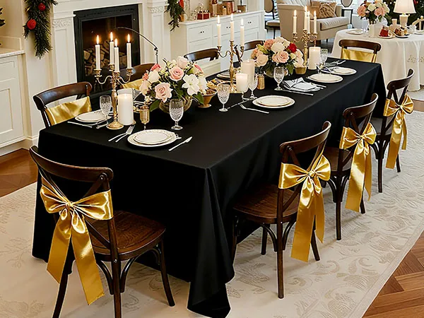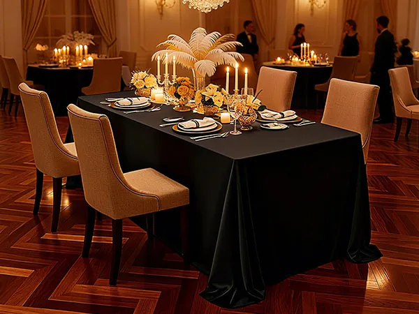 Diese elegante Tischdecke aus hochwertigem Polyestergewebe wertet das Gesamtbild Ihres Tisches auf. Ideal für Hochzeiten, Abschlussfeiern, Geburtstage und andere besondere Anlässe, verleiht sie Ihrer Veranstaltung einen Hauch von Eleganz und Stil.