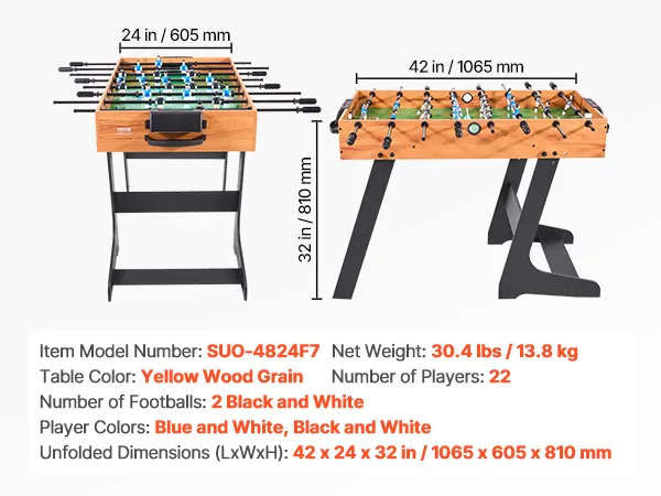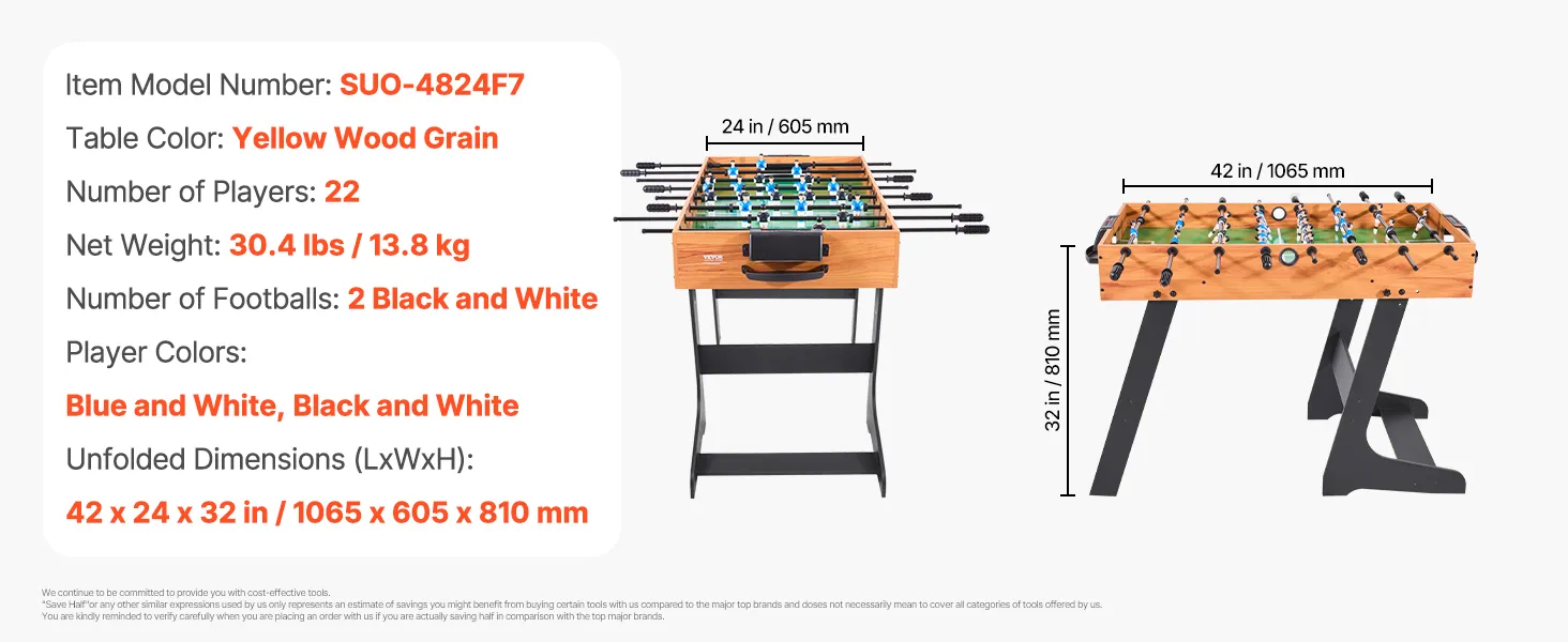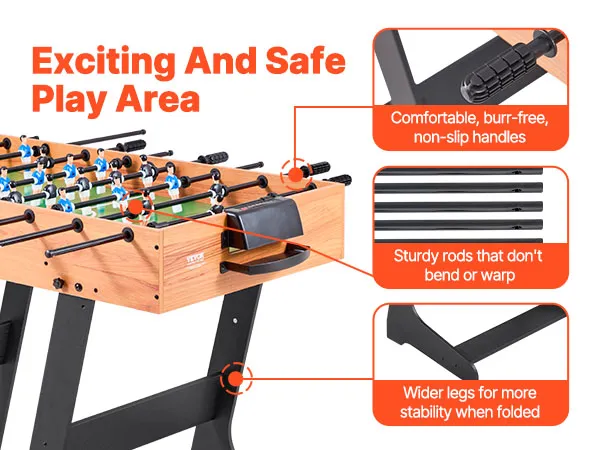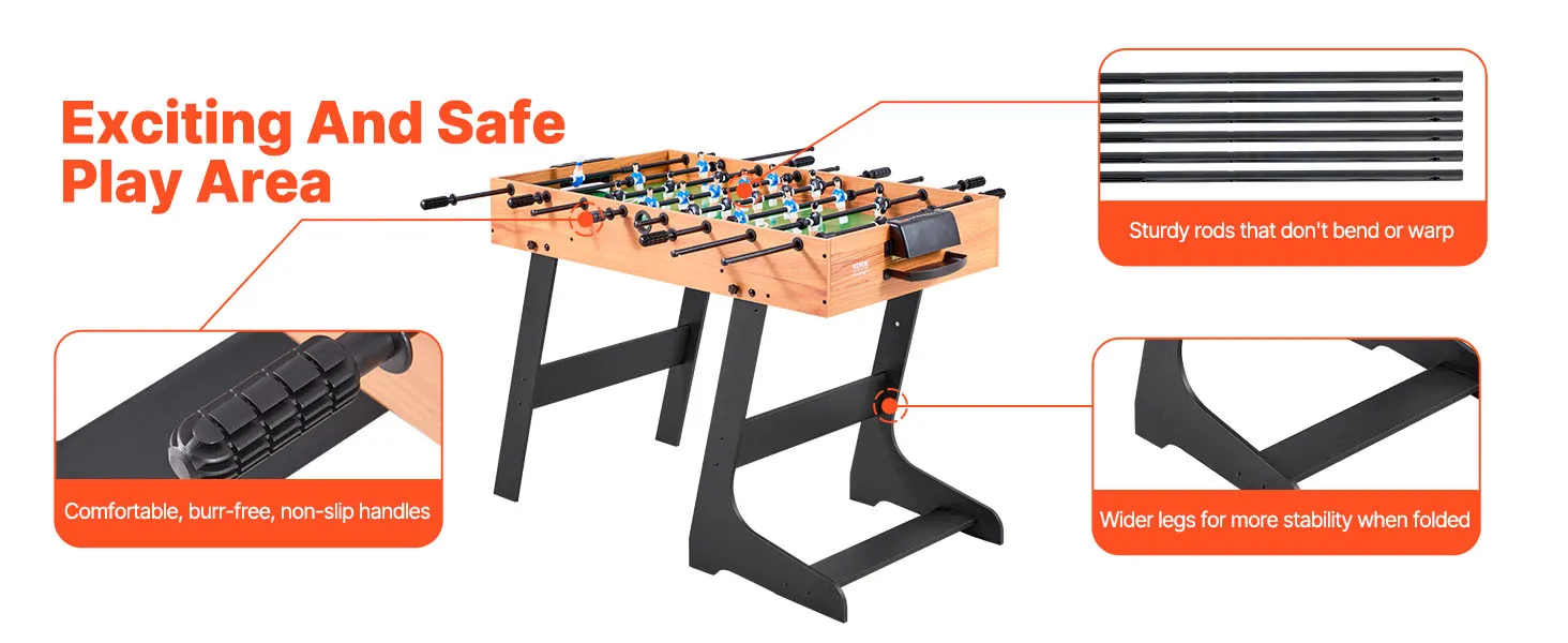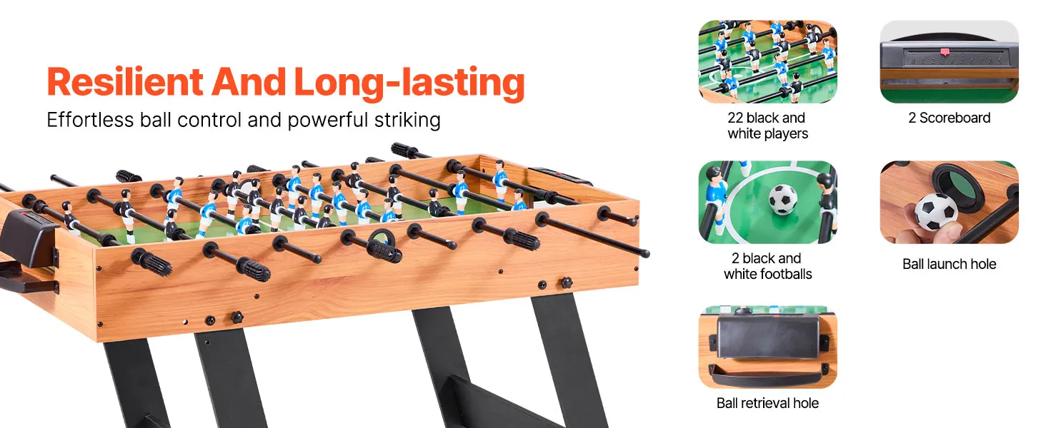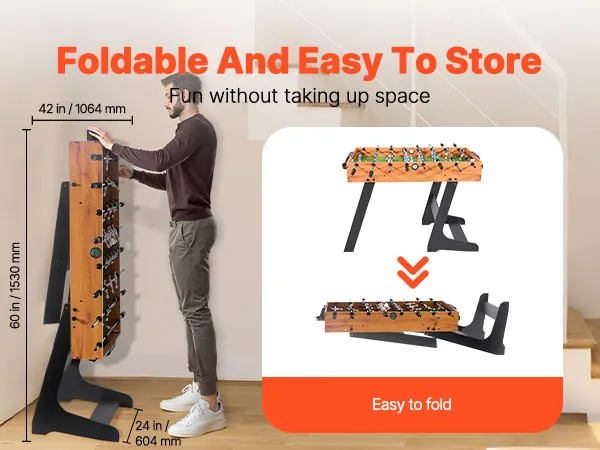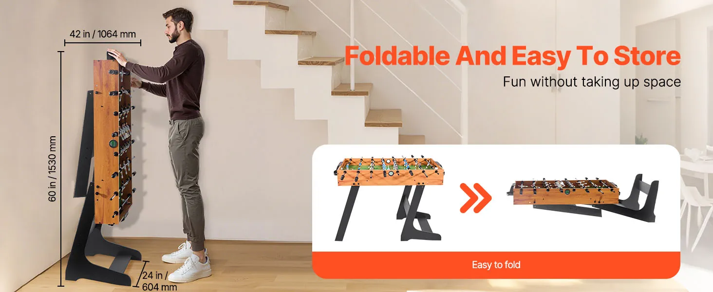 Zusammenklappbar für die Lagerung: Der Tischfußballtisch ist zuverlässig und verfügt über ein zusammenklappbares Design, um die Platzeffizienz zu maximieren und ihn für den Einsatz in kleinen Räumen geeignet zu machen