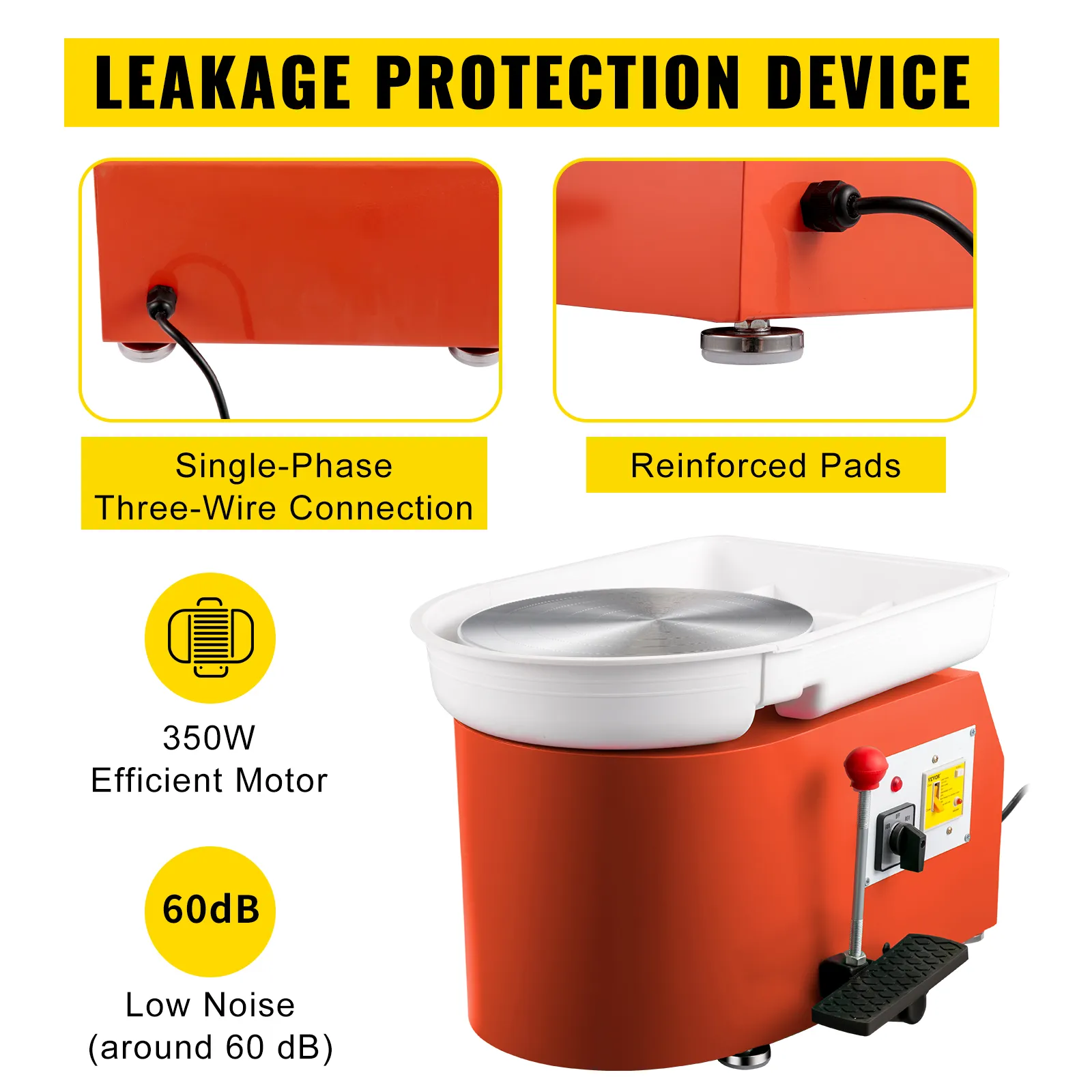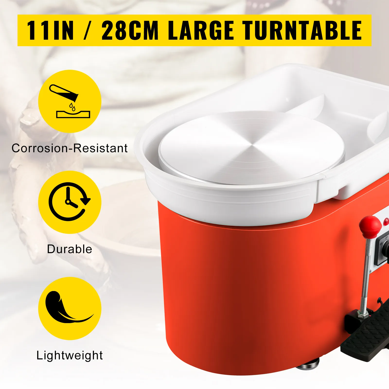 Diese kleine Töpferscheibe besitzt eine kompakte Struktur und feinem Design. Sie verfügt über ein abnehmbares Wasserbecken und einen 11-Zoll-Drehteller aus hochwertiger Aluminiumlegierung, der sich in zwei Richtungen drehen kann. Der leistungsstarke Motor sorgt dafür, dass diese Töpferscheibe gleichmäßig und geräuscharm läuft. Sie eignet sich besonders für den Schulunterricht, Töpferwerkstatt, Heimwerker usw.