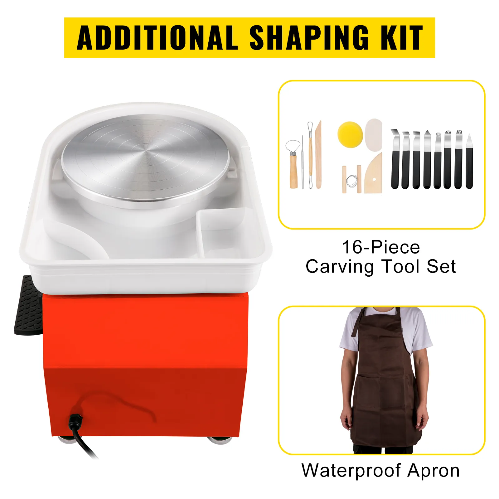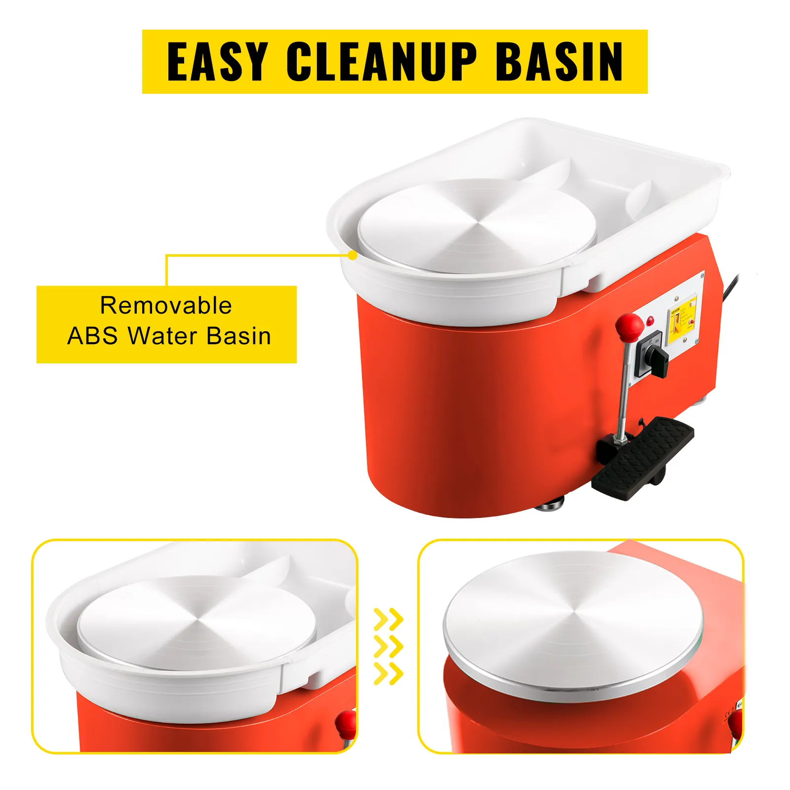 Diese Keramikscheibe ist mit einer abnehmbaren ABS-Wasserwanne ausgestattet, die verhindert, dass Ton und Wasser auf dem Boden verstreut werden und reduziert die Unordnung beim Drehen erheblich. Alles, was Sie brauchen, um die Oberfläche zu trocknen ist etwas Wasser und einen Lappen.
