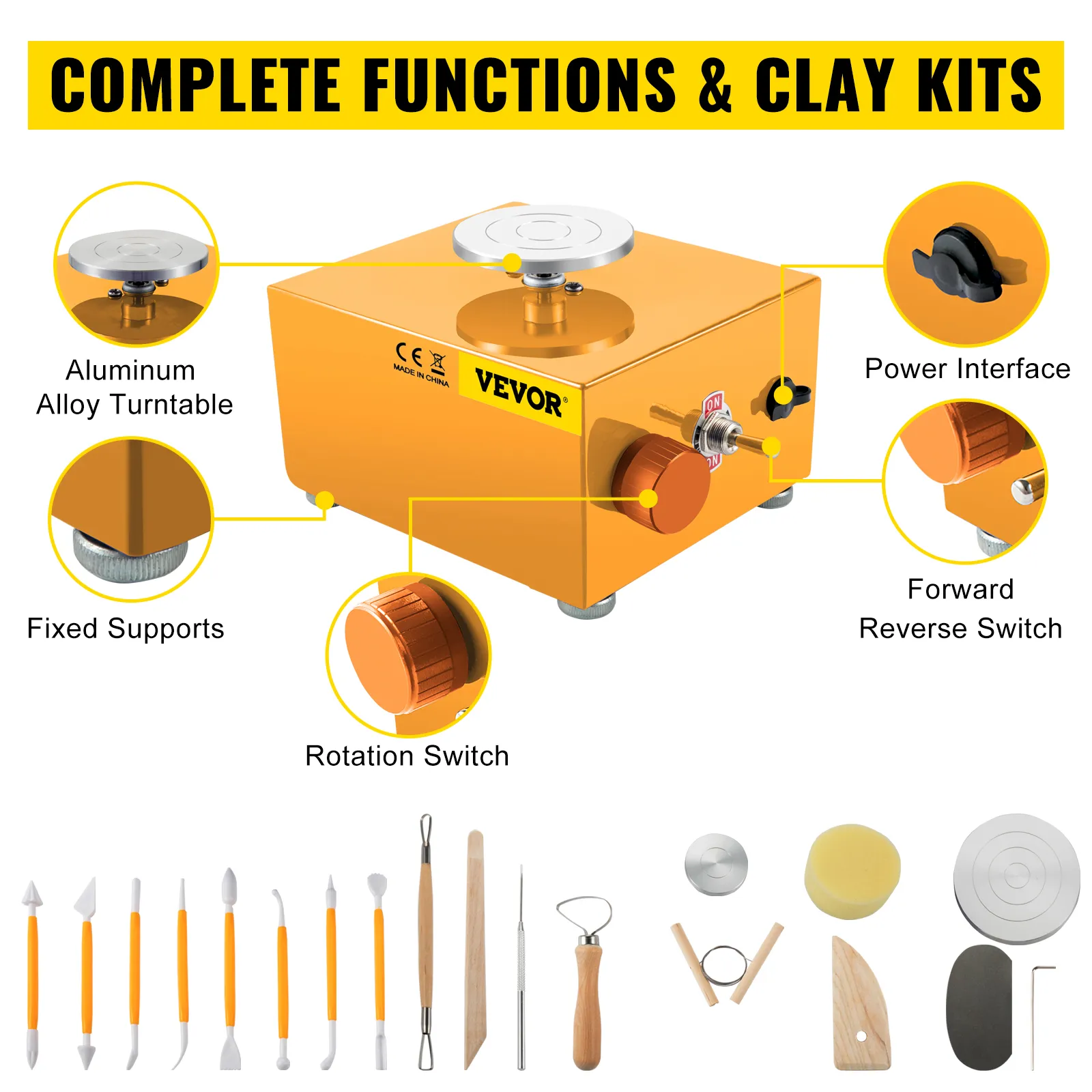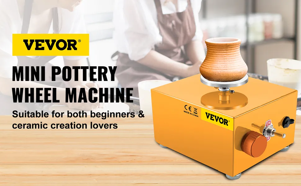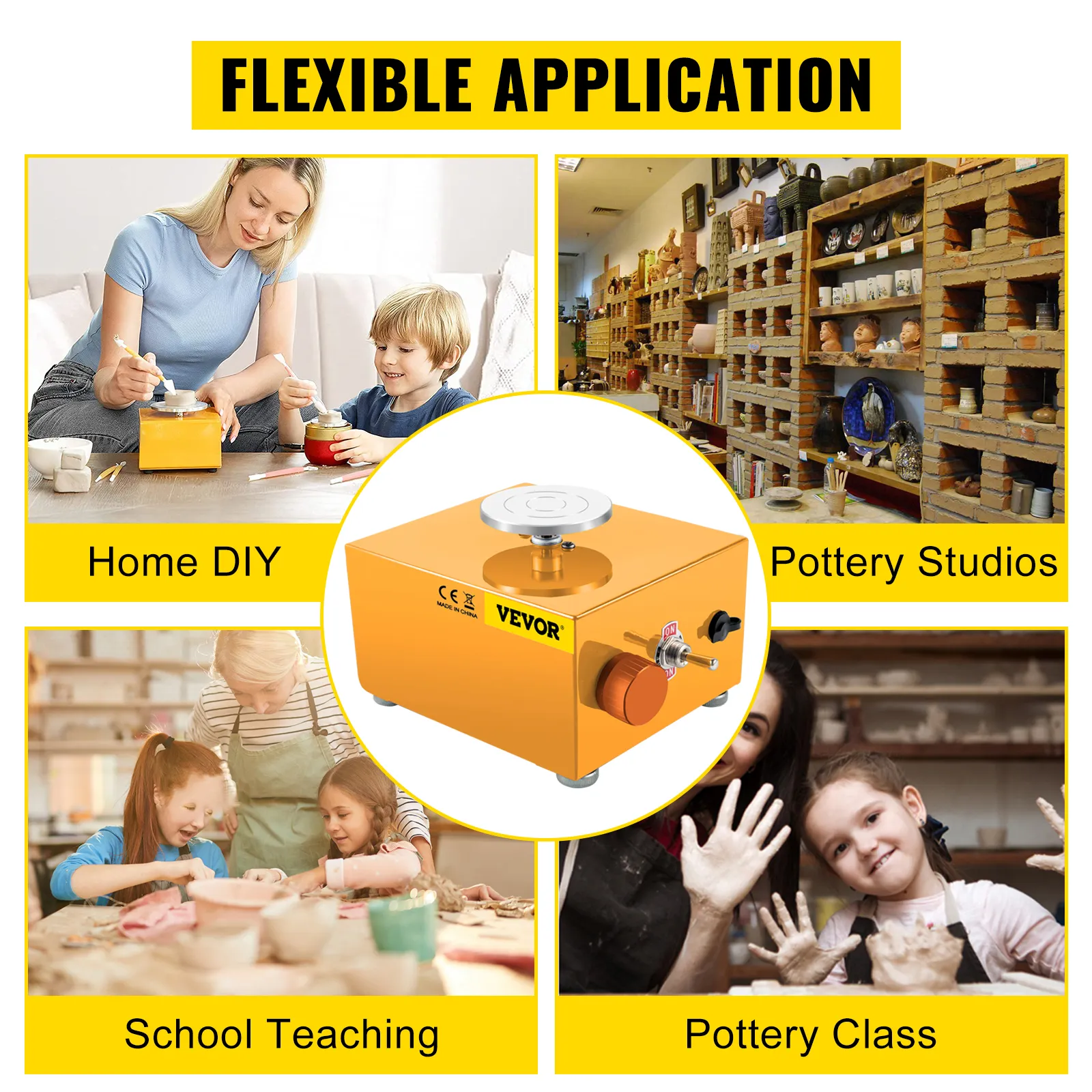 Diese Mini-Töpferscheibe besitzt eine kompakte Struktur mit einem schönen Aussehen und nimmt nur eine kleine Fläche ein. Es bietet auch hochwertige Aluminium-Legierung Drehscheiben und einen leistungsstarken Motor an, sodass das Keramik-Rad zu arbeiten stetig, mit geringem Lärm, vor allem für den Schulunterricht, Töpferei DIY-Shop, zu Hause DIY, usw.