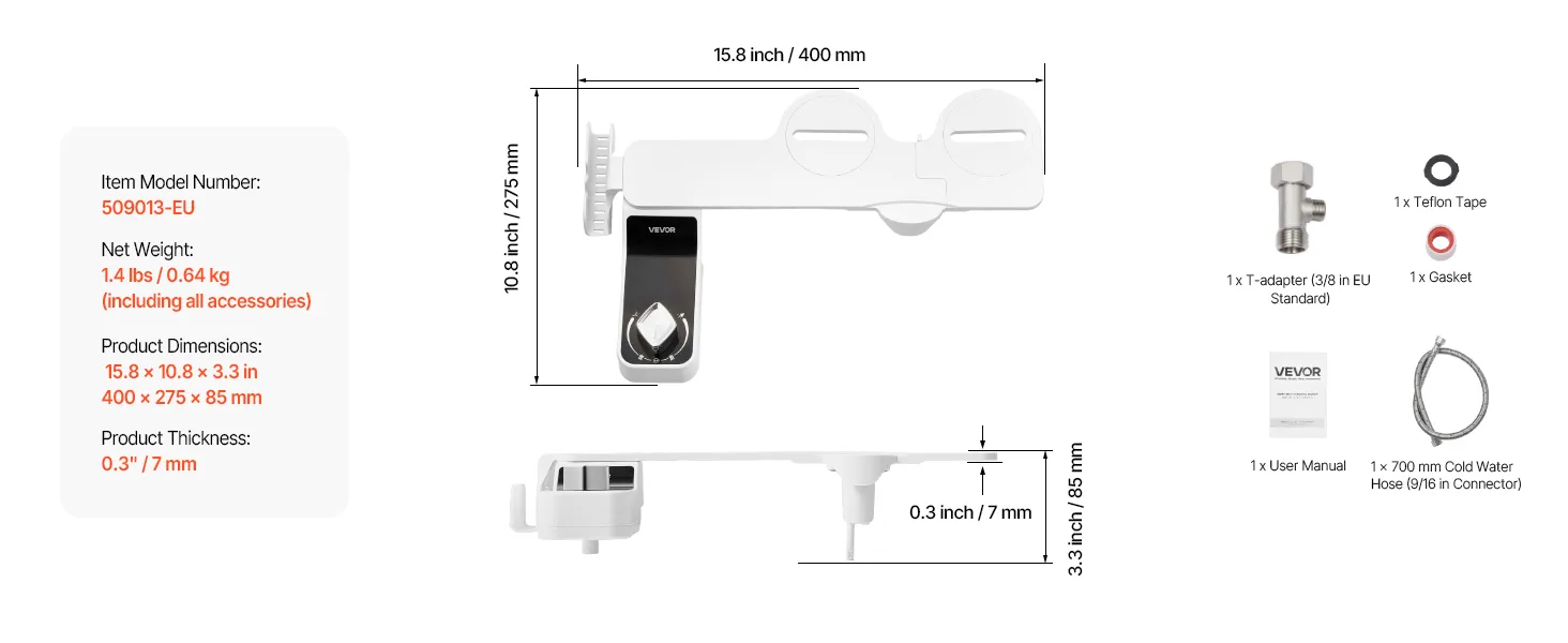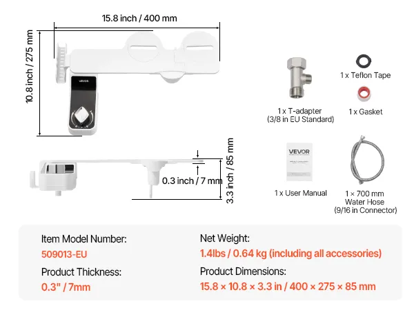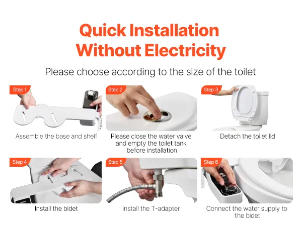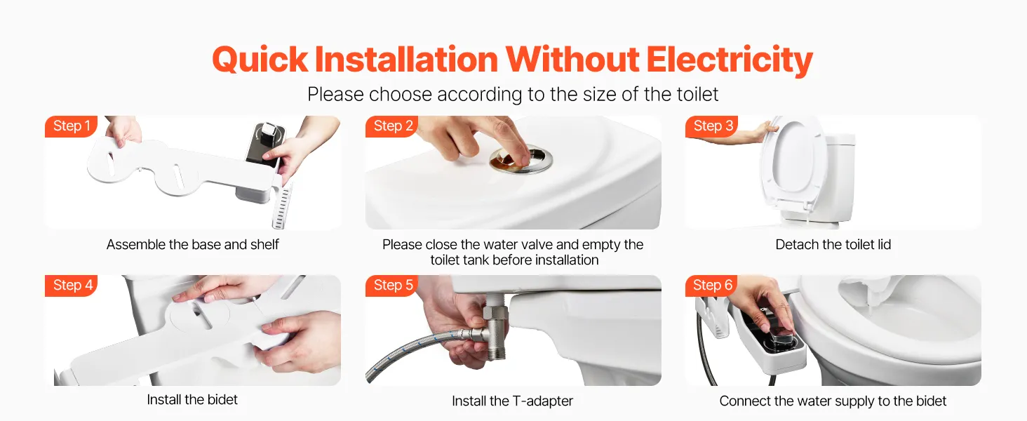 Dieser Toilettensitz-Bidetaufsatz ist einfach zu installieren – kein Strom, kein Spezialwerkzeug und kein Klempner erforderlich. Messen Sie Ihre Toilette einfach vor dem Kauf aus. Tipp: Vermeiden Sie ein zu festes Anziehen der Sitzschrauben, um das Bidet waagerecht zu halten.