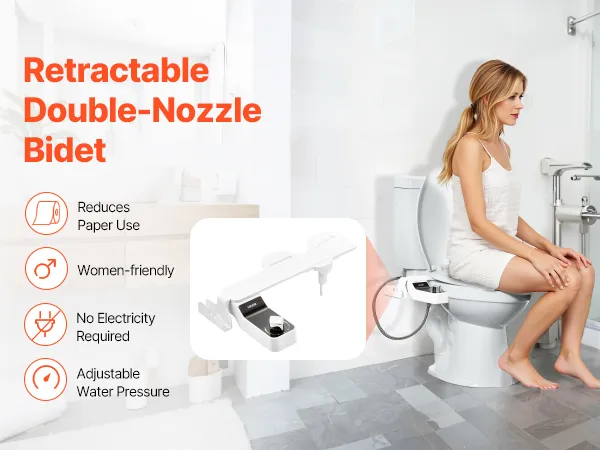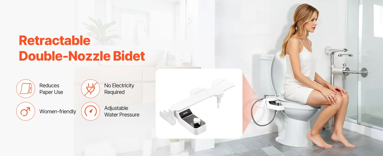 VEVOR Bidet-Toilettenaufsatz 7 mm ultradünner Toilettensitz-Aufsatz mit 2 einziehbaren Düsen & einstellbarem Wasserdruck, nicht elektrischer Kaltwassersprüher für die Wasserwäsche vorne und hinten