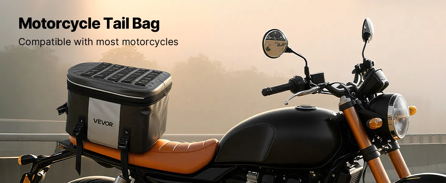 Praktisches & vielseitiges Design: Die Motorradhecktasche verfügt über äußere Schlaufen zum Befestigen zusätzlicher Ausrüstung und innere Zurrgurte, um die Gegenstände übersichtlich zu halten. Der hochwertige, wasserdichte Reißverschluss sorgt für einen reibungslosen Betrieb ohne Wassereintritt