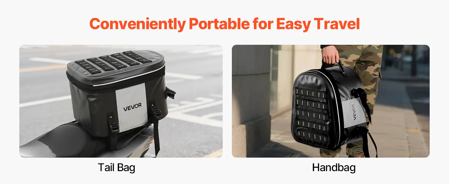 Mehrzwecktasche: Öffnen Sie die Schnallen und diese Motorrad-Sitztasche verwandelt sich schnell in eine praktische Handtasche, sodass Sie Ihre Ausrüstung problemlos vom Motorrad mitnehmen können