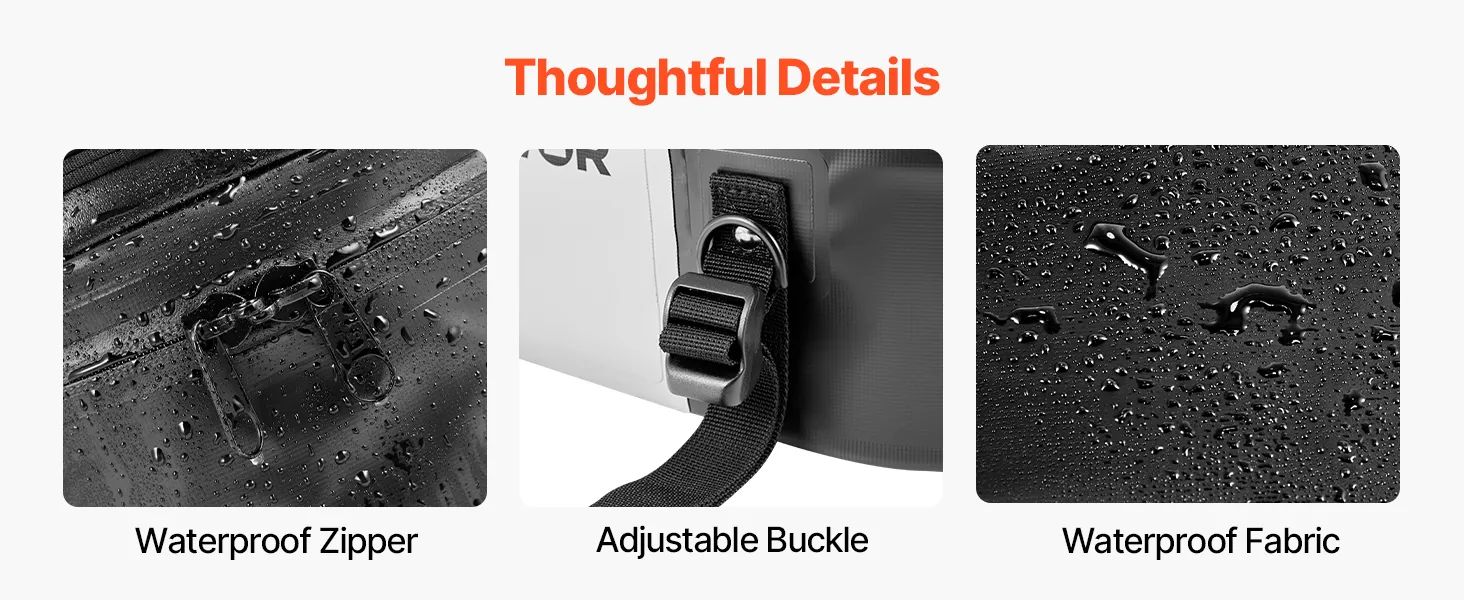 Langlebig & wasserfest: Unsere Hecktasche ist für lange Reisen konzipiert und verfügt über eine PVC-Beschichtung, die eine vollständig wasserdichte und staubdichte Barriere bietet. Sie ist leicht zu reinigen und hält Ihre Sachen bei jedem Wetter trocken.