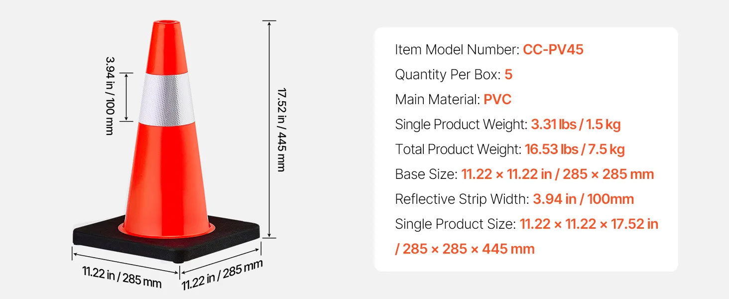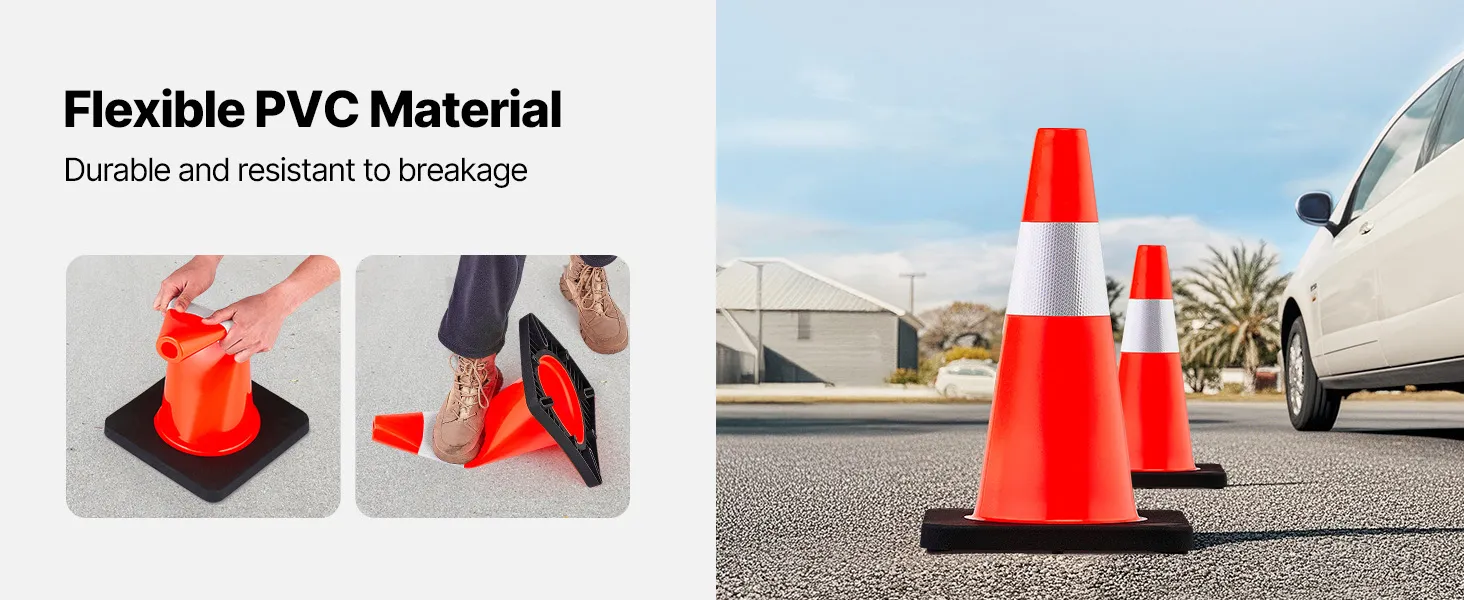 Das reflektierende Halsband hilft bei schlechten Lichtverhältnissen. Diese orangefarbenen Verkehrskegel sorgen für Sichtbarkeit und Sicherheit und sind daher ideal für Verkehrskontrolle, Parkplätze und Schulbereiche. Die leuchtend orange Farbe zieht die Aufmerksamkeit auf sich. Die silbernen und schwarzen Details verbessern die Sichtbarkeit. Diese Funktion sorgt für Sicherheit in allen Umgebungen. Die reflektierenden Verkehrskegel sind so konzipiert, dass sie von weitem gesehen werden. Sie nutzen sich nicht so leicht ab. Das macht den Kegel für den Langzeitgebrauch zuverlässig.