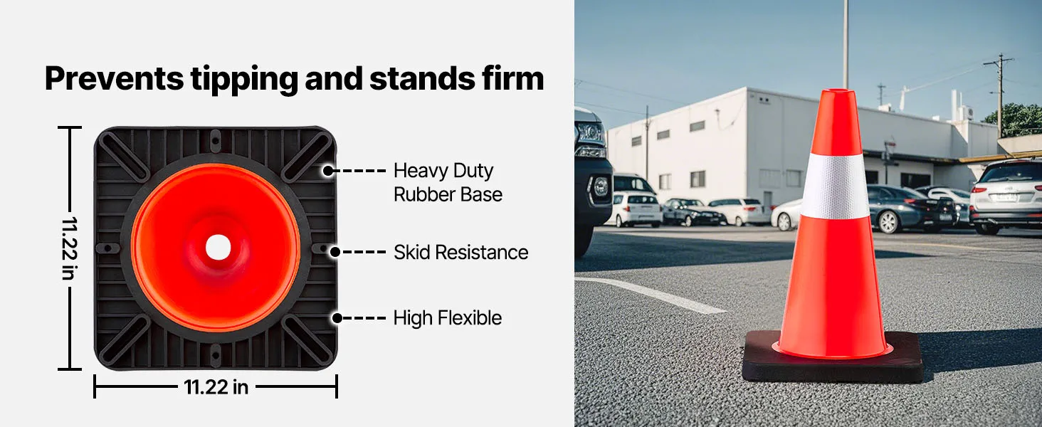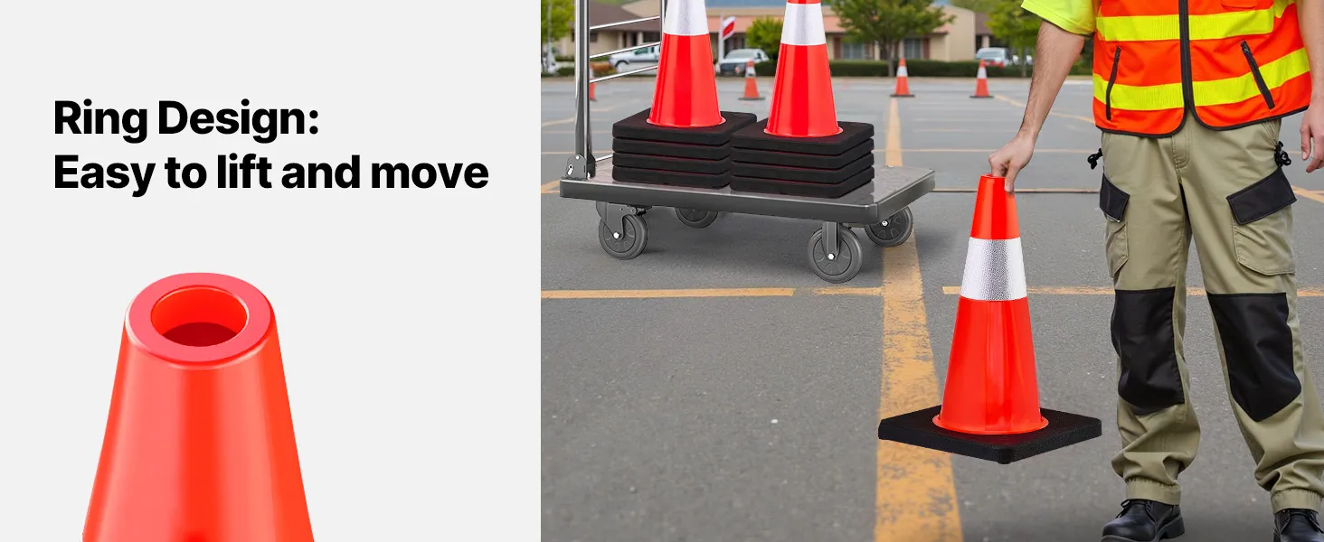 Diese Verkehrskegel mit beschwerter Basis eignen sich perfekt zur Überwachung von Linien. Sie helfen dabei, klare Grenzen zu schaffen. Dies ist in vielen Situationen nützlich. Egal, ob Sie nach Verkehrskontrolle oder Menschenmengenmanagement suchen, sie funktionieren gut. Der Aufbau der Kegel ist einfach. Sie ermöglichen auch das Durchfädeln von Seilen. Dadurch sind sie vielseitig für verschiedene Anwendungen geeignet. Ihre helle Farbe und der reflektierende Kragen verbessern die Sichtbarkeit.