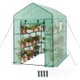 Erweiterter Stauraum: Unser Treibhaus bietet zwei Ebenen mit insgesamt 14 Regalböden für maximale vertikale Lagerung. Jeder Drahtboden trägt bis zu 15 kg (33 lbs) und ist mit Befestigungsbändern für zusätzliche Stabilität ausgestattet