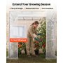 Das tragbare, begehbare Foliengewächshaus verfügt über eine doppelseitige, PE-beschichtete Abdeckung, die Regen abweist und Sonnenschutz der Stufe 6 bietet. Verstärkte Nähte reduzieren die Reißfestigkeit und verlängern die Lebensdauer.