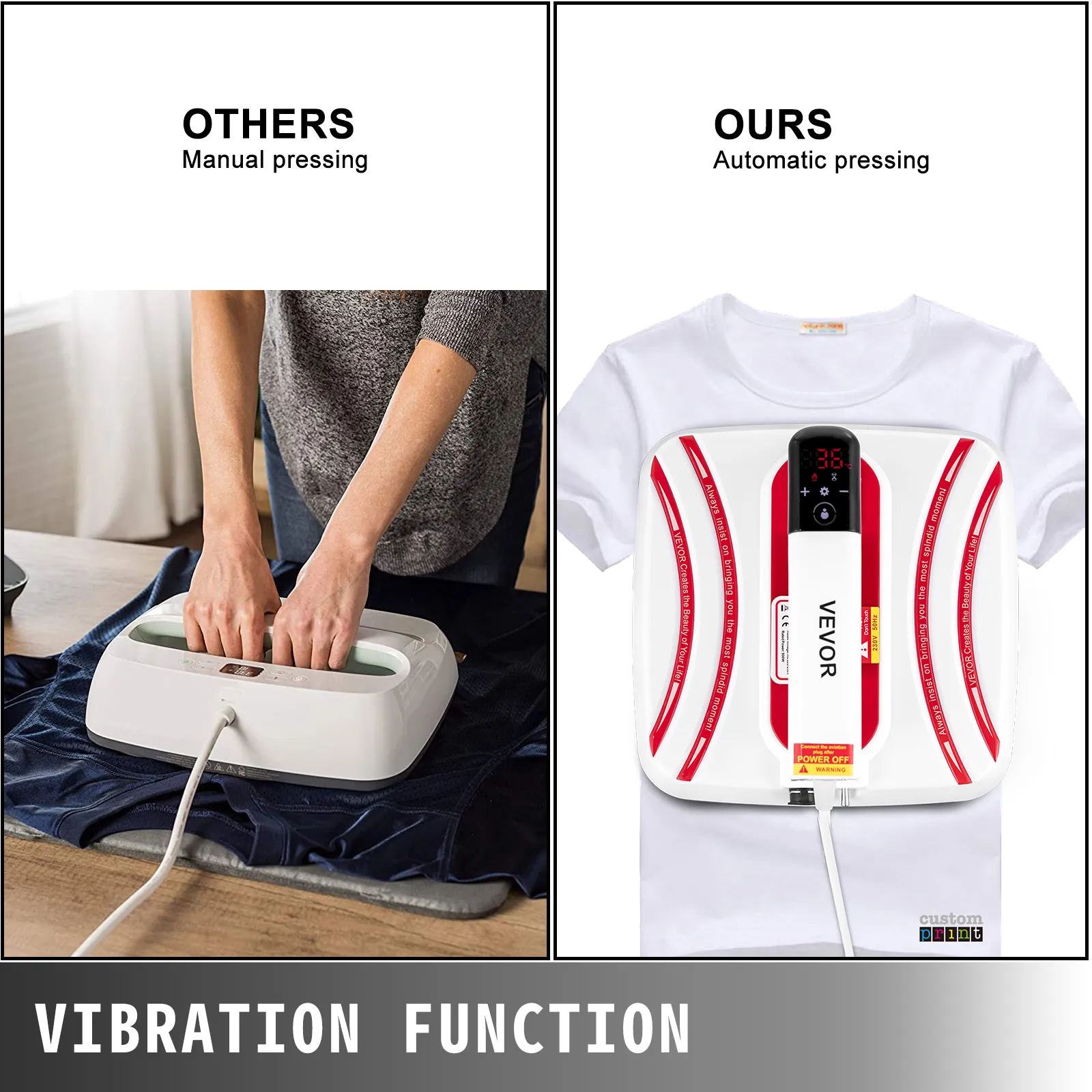 Die tragbare Presswärmemaschine ist ideal für den Heimgebrauch. Ein fortschrittlicher empfindlicher Touchscreen und eine besondere Vibrationsfunktion verbessern die Übertragungsqualität erheblich. Sie können mit Ihrer easy press mini Dutzende von Materialien verwenden, darunter Heißpressvinyl, Glitzer, Transferpapier, Herde usw.