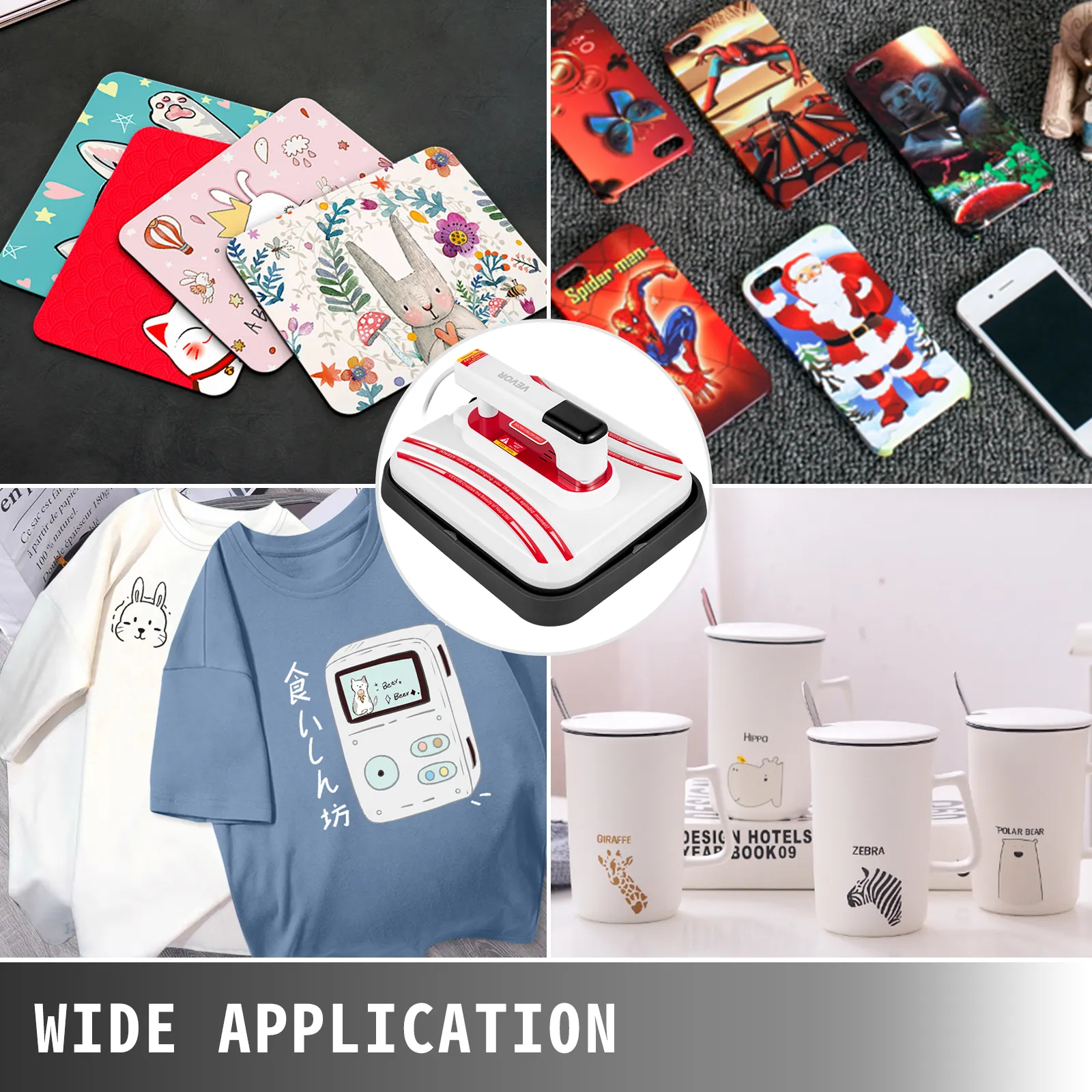 Die T-Shirt-Druckmaschine ist leicht, tragbar und einfach zu verstauen. Dieser 2-in-1-Heißpressendrucker enthält eine Walzenpresse und eine Becherpresse, mit denen Muster auf T-Shirt, Mobiltelefonhülle, Platte, Hut, Kappe, Mauspad usw. übertragen werden können.