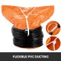 orangefarbener VEVOR-Universalgebläseventilator mit angeschlossenem schwarz-orangefarbenem flexiblem Schlauch.