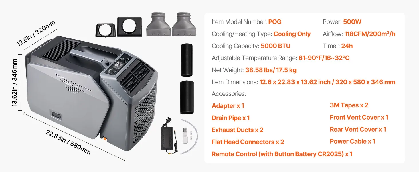 No-drain design: The tent air conditioner features a no-drain design, so you no longer have to worry about condensation or water leakage. Simply place it on a level surface for trouble-free cooling.