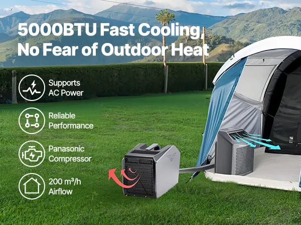 Improved cooling performance: Thanks to its split design, our tent air conditioner ensures efficient heat dissipation outdoors and rapid cooling indoors. Enjoy faster, more consistent temperature drops and say goodbye to the heat – for cool comfort on your outdoor adventures.