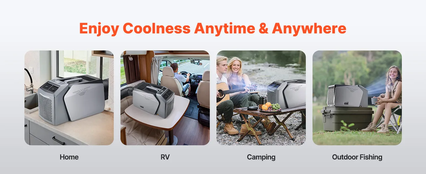 This air conditioner is suitable for various environments, including camping, RVs, outdoor activities and more, and will meet all your cooling needs.