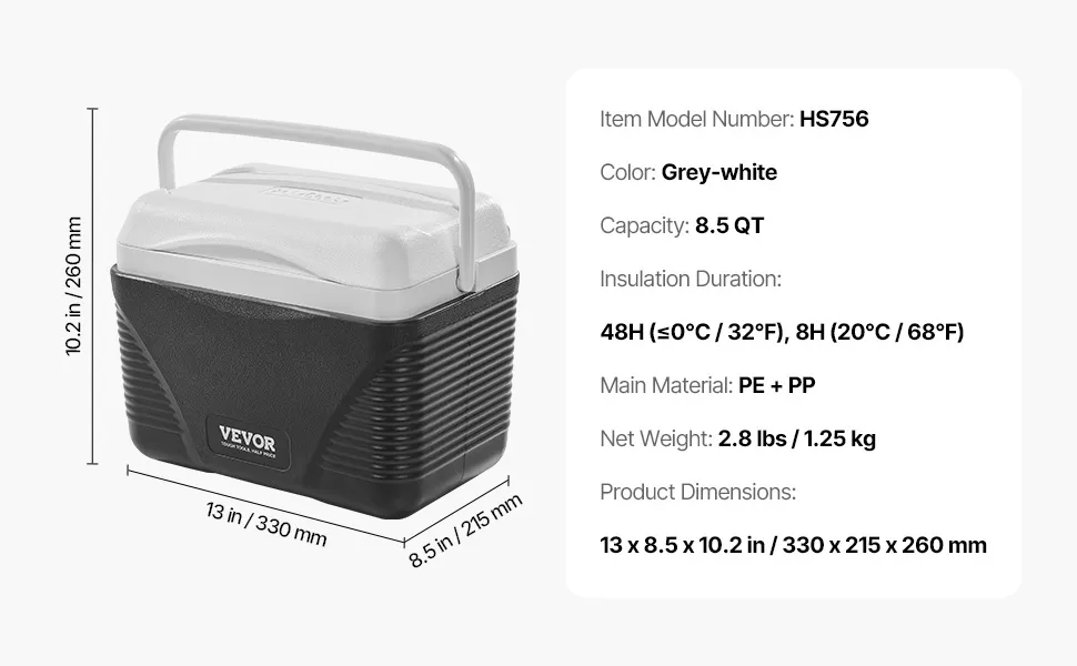 Diese Kühlbox verfügt über ein Stauvolumen von 8,5 Qt und bietet somit ausreichend Platz für eine große Menge an Lebensmitteln und Getränken.