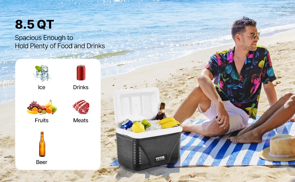 Großes Fassungsvermögen von 8,5 Qt: Diese tragbare Kühlbox hat ein Fassungsvermögen von 8,5 Qt und bietet Platz für bis zu 12 Dosen (330 ml / 11 oz), ideal für Kurztrips, Familienpicknicks und mehr