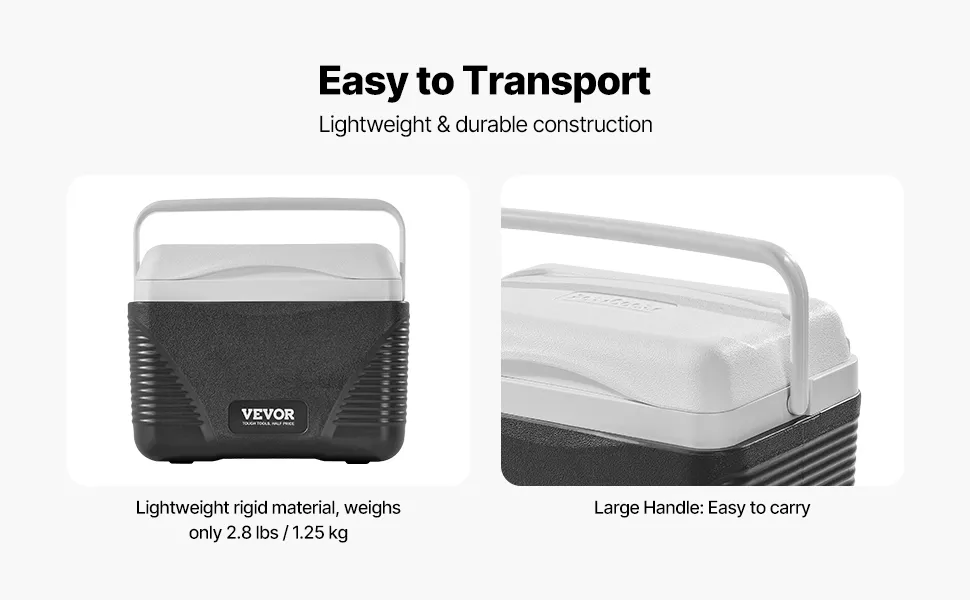 Leichtes Material: Die Kühlbox ist aus leichten, robusten Materialien gefertigt und wiegt nur 2,8 lbs (1,25 kg), wodurch Sie im Freien weniger Gepäck mitnehmen müssen