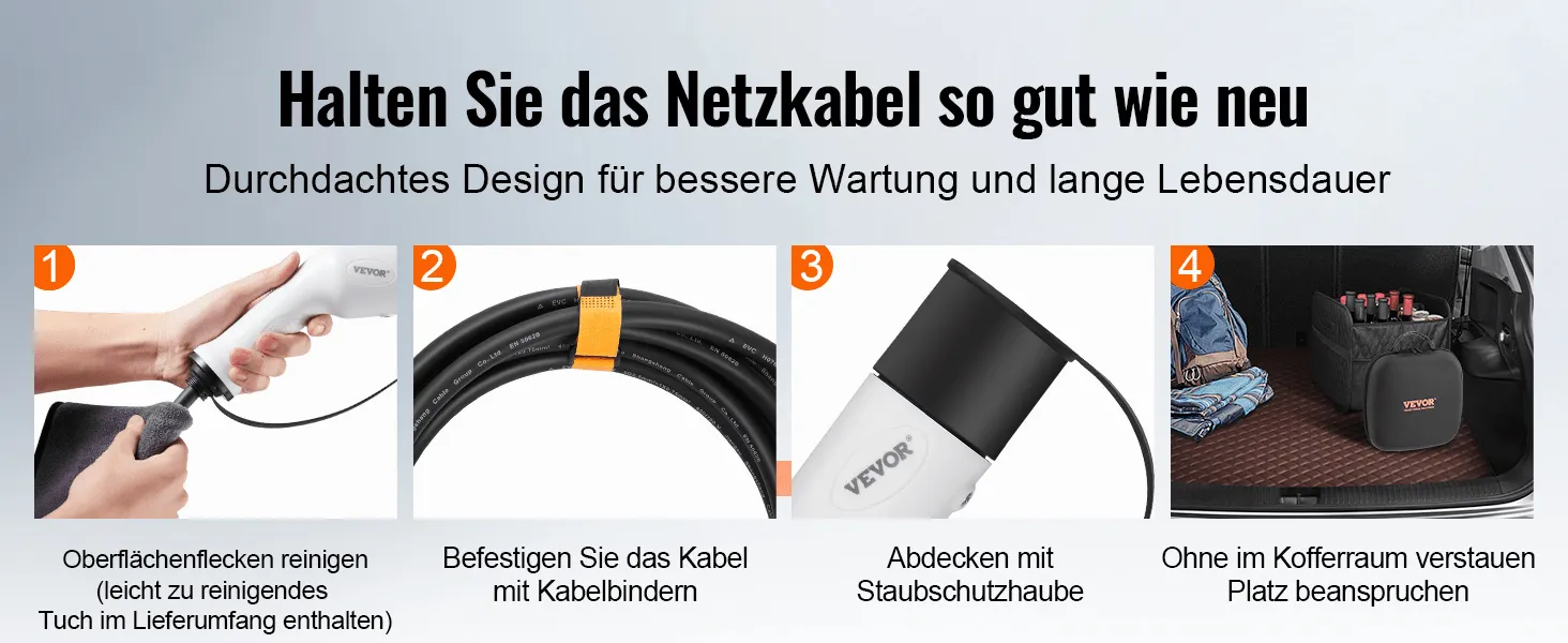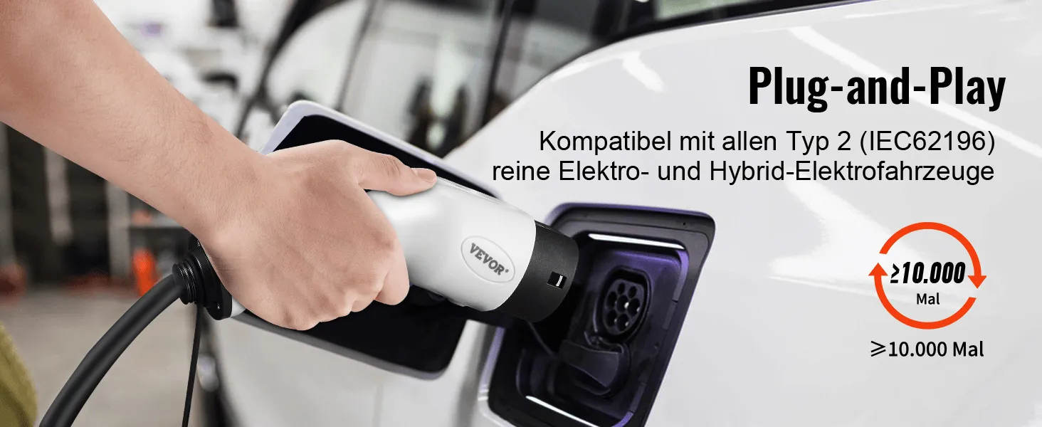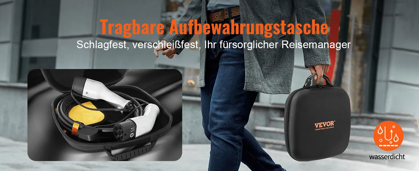 Das VEVOR EV-Autoladekabel ist mit allen Typ-2-Modellen kompatibel, Plug & Play und ein zuverlässiger Reisebegleiter. Die Aufbewahrungstasche löst alle Ihre Reise- und Outdoor-Notfall-Ladeprobleme. Wenn Sie bereit sind, wieder zu laden, wissen Sie bereits, wohin Sie gehen müssen!
