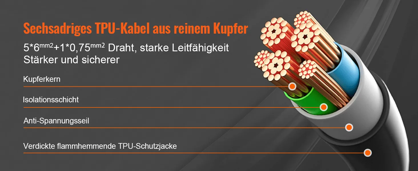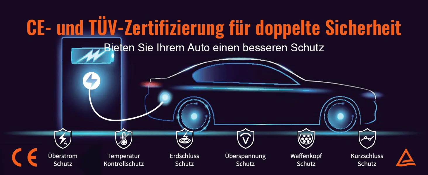 A: Vergewissern Sie sich, ob die Wechselstrom-Ladestation und das bordeigene Ladegerät einphasig oder dreiphasig sind. Bei gleicher Anzahl von Stromphasen wählen Sie ein Hochstrom-Ladekabel, das mit einem Fahrzeug mit niedrigem Stromverbrauch abwärtskompatibel ist.