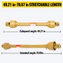 Der PTO-Extender hat ein flexibles, ausziehbares Design mit einer komprimierten Länge von 49" / 1250 mm und einer verlängerten Länge von 71" / 1800 mm. Bei 540 U/min mit 35 PS, 26 kW und 460 Nm Drehmoment; 53 PS, 39 kW und ein Drehmoment von 360 Nm bei 1000 U/min.