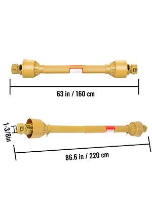 Diese T4-Pinnen-Zapfwelle besteht aus hochwertigem aufgekohltem 20CrMnTi-Stahl und Q345-Rohrstahl mit einer gelb lackierten Oberfläche, um die Haltbarkeit zu verbessern und großen Stößen, höherem Drehmoment und hoher Geschwindigkeit standzuhalten.