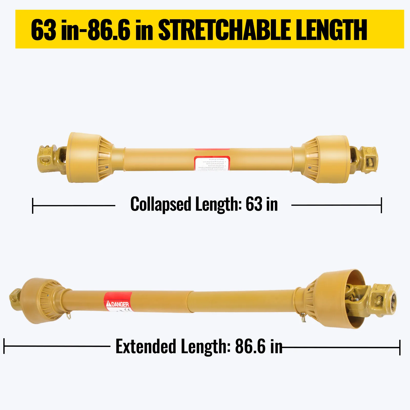 Diese verzahnte Gelenkwelle ist aus robustem Stahl gefertigt und verfügt über 1-3/8"-6-Zähne sowohl auf der Traktor- als auch auf der Geräteseite. Sie zeichnet sich durch ihr verstellbares Teleskoprohr, ihre hohe Leistung und ihren einfachen Austausch aus. Sie kann als landwirtschaftliches Antriebswerkzeug dienen, um Ihre Arbeitseffizienz deutlich zu verbessern.