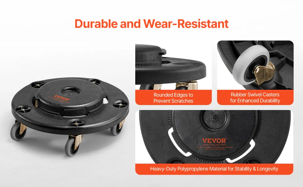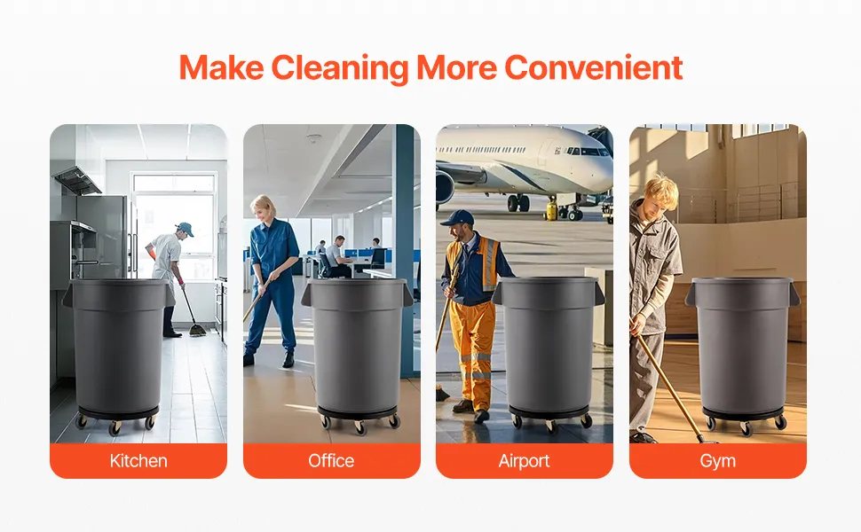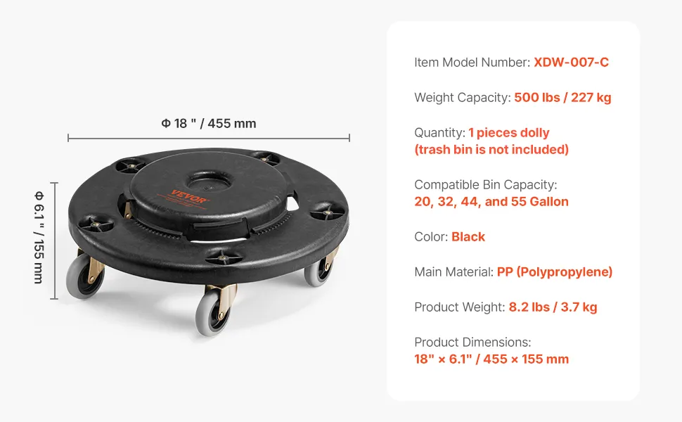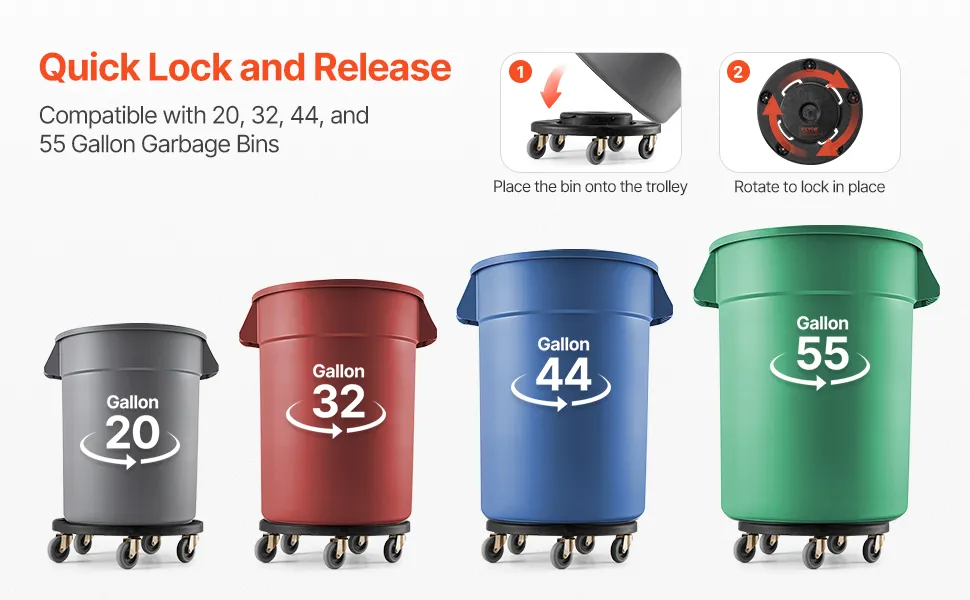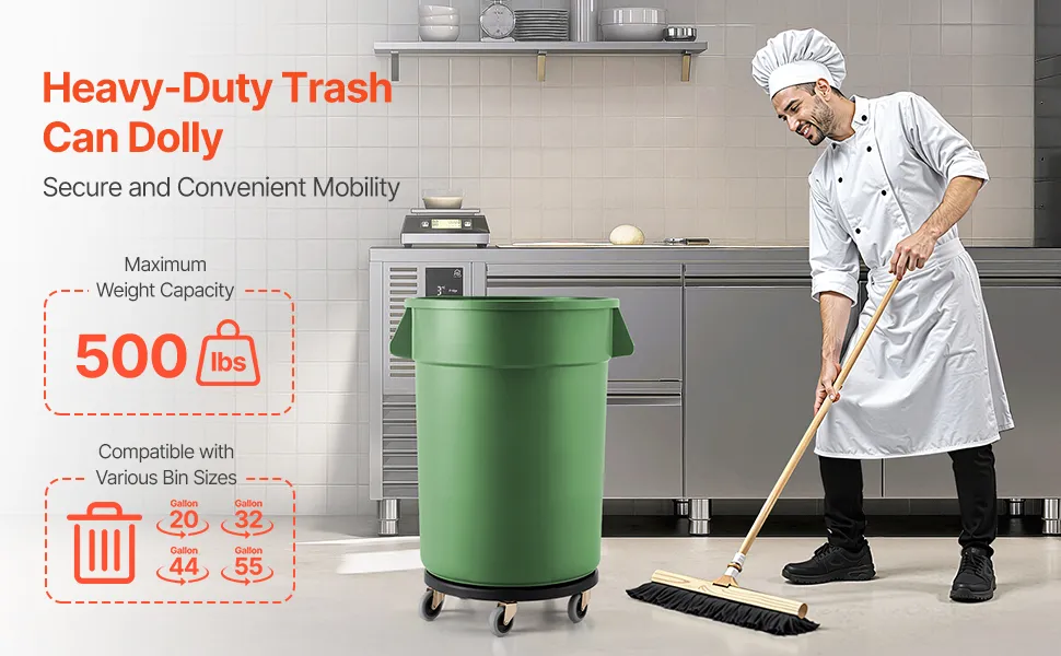 Hohe Tragkraft: Mit einer Tragkraft von 227 kg ist dieser Müllwagen mit 20/32/44/55 Gallonen (75,7/121/166,6/208 L) Fassungsvermögen kompatibel. Er reduziert den Aufwand für den Abfalltransport erheblich und bietet Ihnen eine stabile und zuverlässige Lösung für alle Ihre Mülltransportbedürfnisse.