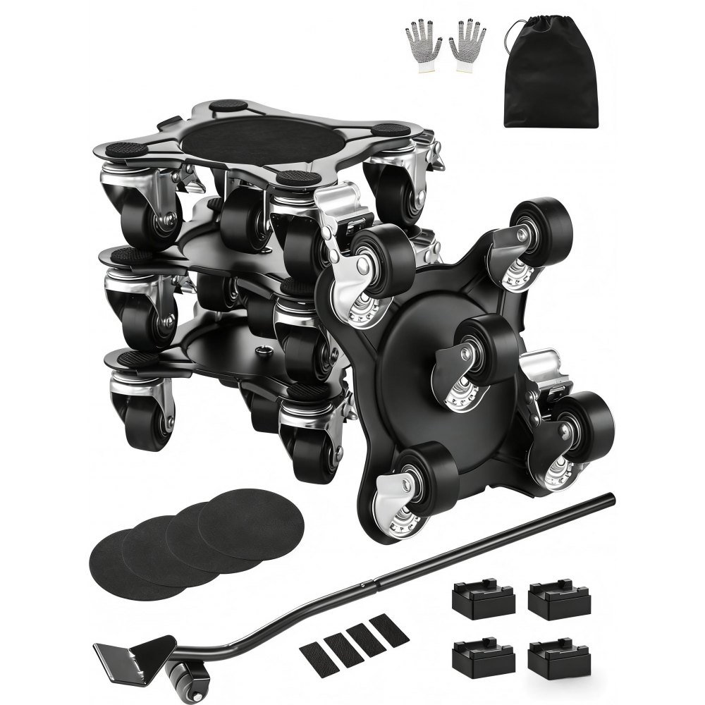 Einfach und leicht zu verwenden: Ein Brecheisen ist im Lieferumfang enthalten, um das Bewegen zu erleichtern, und Sie können Möbel ganz einfach anheben oder verschieben. Platzieren Sie den Rollwagen einfach unter dem Gegenstand, nachdem Sie ihn hochgehoben haben, wiederholen Sie dies für alle Ecken und schieben Sie ihn dann gleichmäßig, um ihn mühelos zu transportieren.