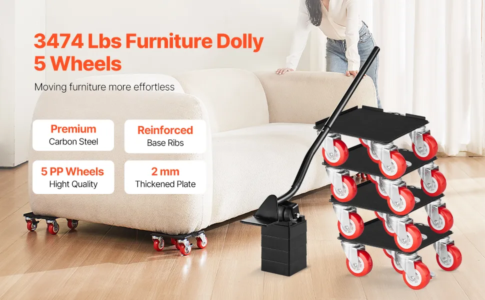 Einfach und leicht zu verwenden: Ein Brecheisen ist im Lieferumfang enthalten, um das Bewegen zu erleichtern, und Sie können Möbel ganz einfach anheben oder verschieben. Platzieren Sie den Rollwagen einfach unter dem Gegenstand, nachdem Sie ihn hochgehoben haben, wiederholen Sie dies für alle Ecken und schieben Sie ihn dann gleichmäßig, um ihn mühelos zu transportieren
