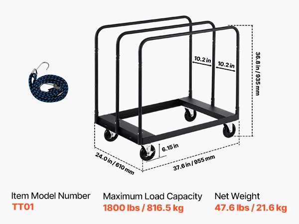 Dieser Hochleistungs-Plattenwagen aus Stahl trägt bis zu 816 kg. Damit können Sie mehrere Platten problemlos bewegen, was Arbeit spart, die Effizienz steigert und einen sicheren Transport gewährleistet.