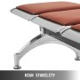 Der gesamte dreisitzige Wartezimmerstuhl wird von einer massiven Stahlstange getragen. Hochfester Stahl verformt sich nicht leicht, ist aber stark genug.