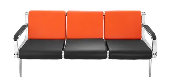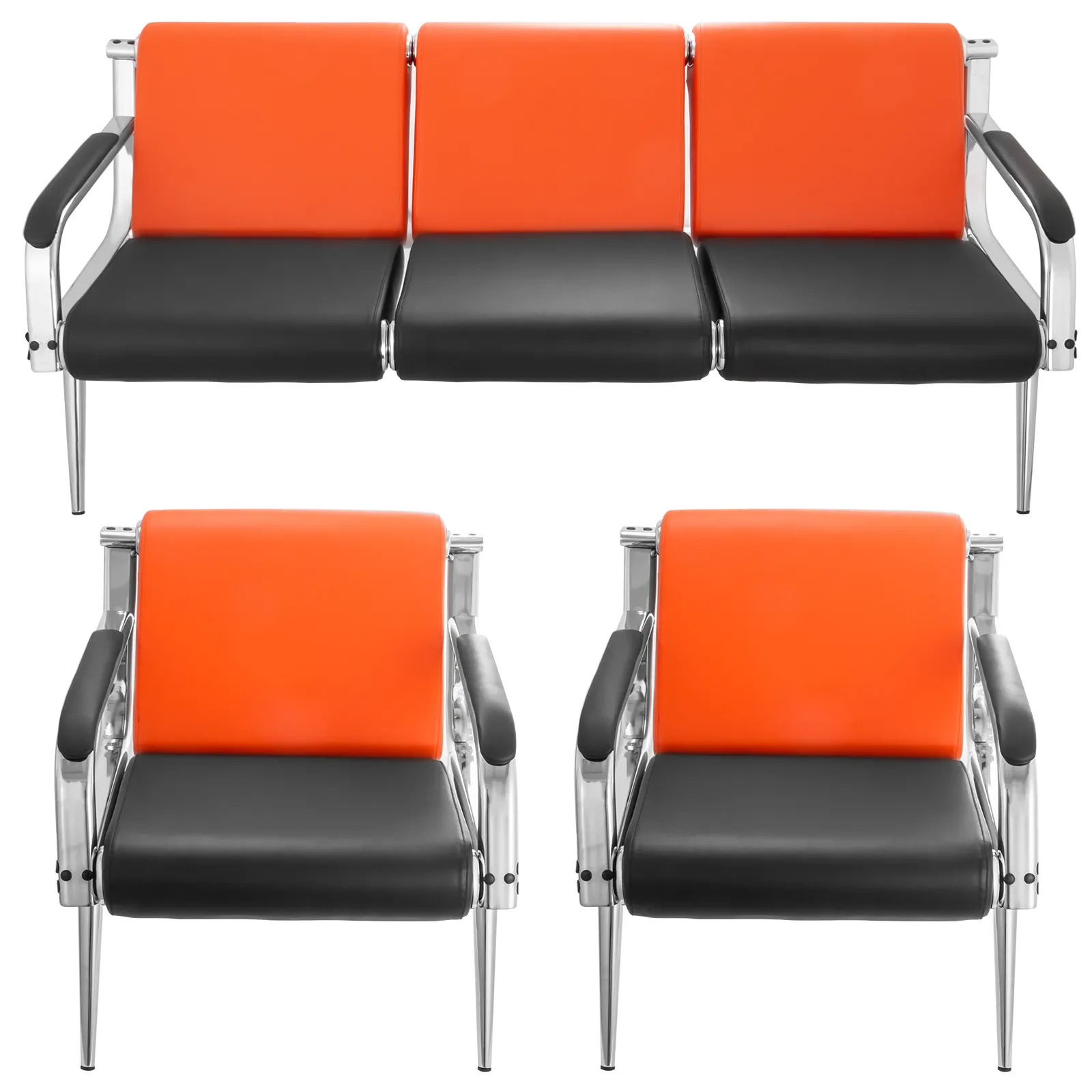 3-Sitz-Wartebank + 2 Stühle aus PU Leder schwarz und orange