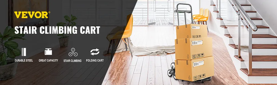 Hier bieten wir Ihnen einen brandneuen tragbaren Treppensteigwagen mit einem Paar dreieckiger Räder, zwei Stützrädern und zwei Hilfsrädern. Mit einer zusammenklappbaren Struktur ist es leicht zu tragen. Dieses Produkt gewährleistet einen stabilen und reibungslosen Betrieb, wenn Sie eine schwere Last nach oben und unten tragen.