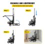 Ein Paar dreieckiger Räder, zwei Stützräder und zwei Hilfsräder erleichtern den Aufstieg auf und ab, und ein faltbarer Steuerknüppel kann das Lager halten, wenn Sie sich ausruhen.