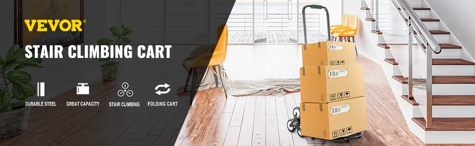 Hier bieten wir Ihnen einen brandneuen tragbaren Treppensteigwagen mit einem Paar dreieckiger Räder, zwei Stützrädern und zwei Hilfsrädern. Mit einer zusammenklappbaren Struktur ist es leicht zu tragen. Dieses Produkt gewährleistet einen stabilen und reibungslosen Betrieb, wenn Sie eine schwere Last nach oben und unten tragen.