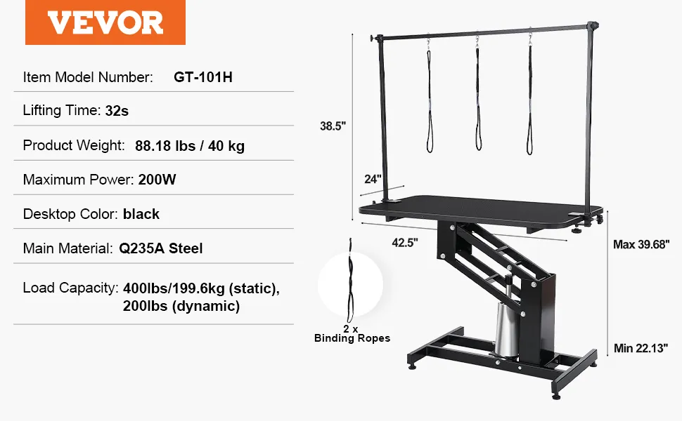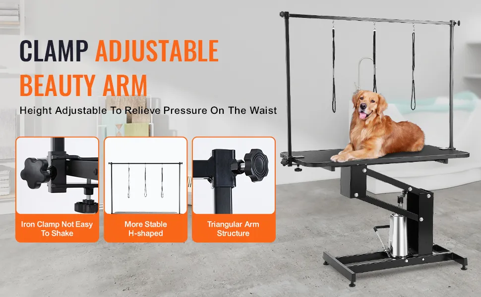 Dieser Hochleistungs-Hundepflegearm von VEVOR ist auf Langlebigkeit ausgelegt. Er zeichnet sich durch ein langlebiges und stabiles Design aus. Der gesamte Tisch besteht aus Q235A-Stahl. Dies gewährleistet eine langfristige Nutzung ohne Verformung. Sein Hydrauliksystem ist robust und zuverlässig. Es sorgt für eine stabile Höhe des Tisches. Unsere robuste Konstruktion macht ihn für häufigen Gebrauch geeignet. Sein Design stellt sicher, dass der Tisch harten Pflegeaufgaben gewachsen ist. Die Stabilität verringert das Unfallrisiko und macht ihn zu einer sicheren Wahl für Tierpfleger. Das langlebige Design stellt sicher, dass unser Tisch jahrelang funktionsfähig bleibt. Ist dies eine lohnende Investition für Ihre Tierpflegebedürfnisse?