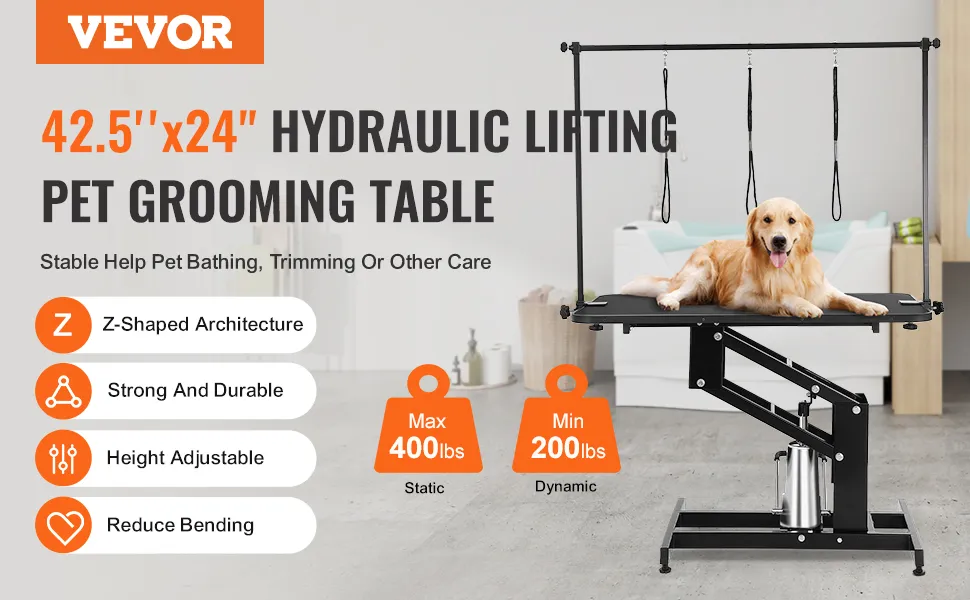 Dieser 43 Zoll große hydraulische Tierpflegetisch ist unglaublich robust. Er hat ein robustes Design, das Stabilität gewährleistet. Dieser Tisch kann bis zu 400 Pfund statisches Gewicht tragen. Daher ist er für eine Vielzahl von Pflegeaufgaben zuverlässig. Hochwertiger Q235A-Stahl bildet die Grundlage dieses Tisches. Dies gewährleistet eine lange Haltbarkeit. Unser hydraulisches System ermöglicht eine reibungslose Höhenverstellung. Er ist ideal für den privaten und professionellen Einsatz. Seine robuste Konstruktion sorgt für ein sicheres Gefühl, sodass Sie Haustiere pflegen können, ohne sich um die Stabilität sorgen zu müssen. Sie können Hunde und Katzen pflegen, ohne Angst vor Instabilität haben zu müssen. Das Design des Tisches verringert die Möglichkeit von Unfällen. Daher ist er eine sichere Wahl für die Tierpflege. Aber die Tatsache bleibt klar: Die Stärke dieses Tisches bedeutet, dass er einer harten Nutzung problemlos standhalten kann. Ist dieser Tisch eine zuverlässige Option für die Tierpflege?