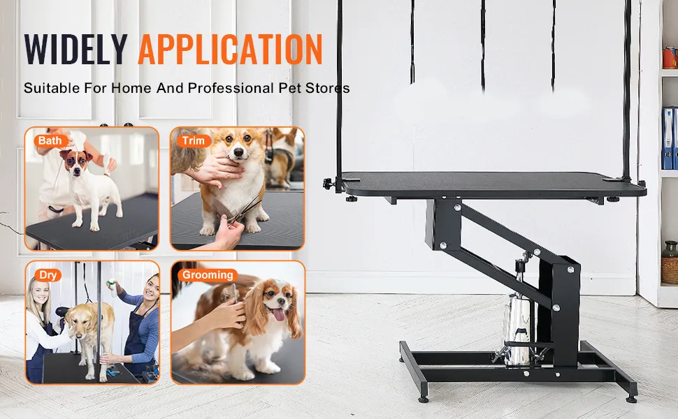 Dieser VEVOR-Pflegetisch ist ideal für mittelgroße und kleine Hunde. Er hat eine 42,5 x 24 Zoll große Tischplatte. Diese Größe ist für verschiedene Tierpfleger geeignet. Das Design des Tisches stellt sicher, dass er für verschiedene Tiergrößen geeignet ist. Er ist sowohl für den privaten als auch für den professionellen Gebrauch geeignet. Außerdem macht ihn seine Vielseitigkeit zu einer unglaublich nützlichen Ergänzung für jede Pflegeeinrichtung. Dieser Tisch kann mehrere Pflegeaufgaben effizient erledigen. Sein Layout garantiert, dass sich die Haustiere während der Pflege wohlfühlen. Daher ist er sowohl für Tierbesitzer als auch für Hundepfleger eine logische Wahl. Darüber hinaus steigert seine Vielseitigkeit seinen Gesamtwert.