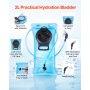 Practical & innovative water bladder: This hydration pack has a large opening for effortless filling and cleaning. It features an automatic on/off valve to prevent leaks, a 360° mouthpiece with a dustproof cap for hygiene, and an ergonomic handle design for comfort and functionality. Experience a seamless and convenient hydration experience.