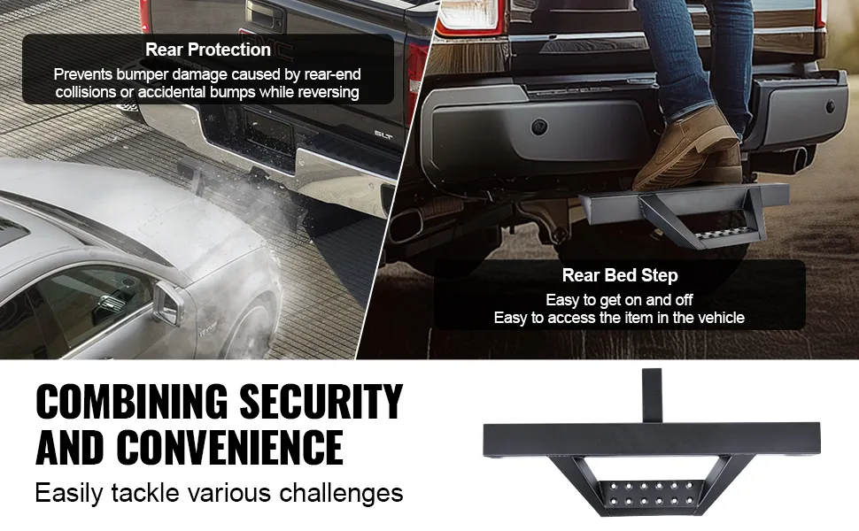 Sicherheit & Funktionalität: Diese Trittstufe ist sowohl ein robustes Sicherheitselement als auch ein praktisches Werkzeug zum Be- und Entladen. Sie bietet maximalen Schutz für das Heck des Fahrzeugs und widersteht Auffahrunfällen, Kratzern und Stößen. Er absorbiert den größten Teil des Aufpralls, um Ihr Fahrzeug abzufedern und so das Risiko schwerer Verletzungen für Sie und Ihre Mitfahrer zu verringern. Das durchdachte Design sorgt für eine stabile Trittstufe und erleichtert das Be- und Entladen schwerer Gegenstände.