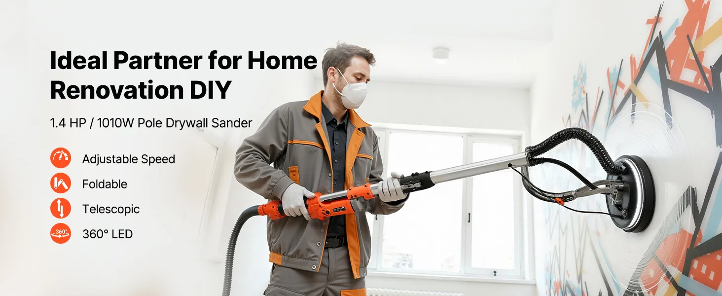 1.4 HP Pole Drywall Sander with Self-Suction Assist