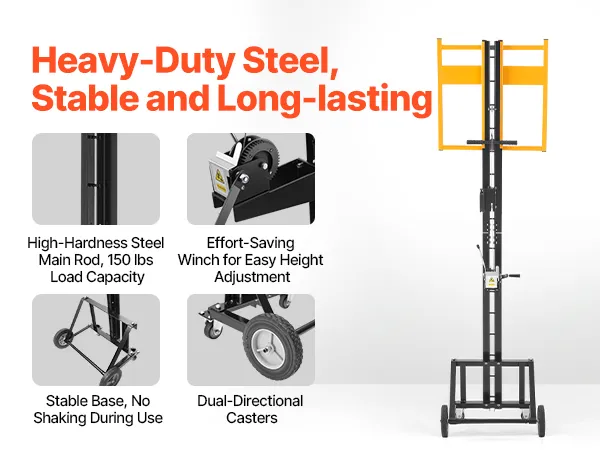 Tragkraft: Dieser Trockenbau-Hebelift ist aus robustem Kohlenstoffstahl gefertigt und garantiert so eine lange Lebensdauer. Mit einer maximalen Tragkraft von 68 kg ist dieses Werkzeug die ideale Wahl für den privaten und gewerblichen Einsatz.