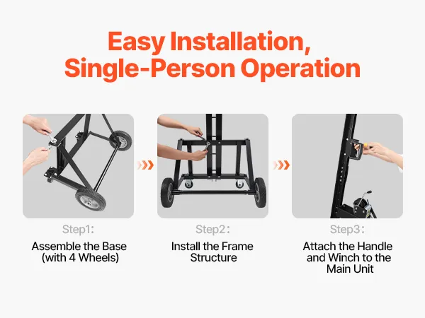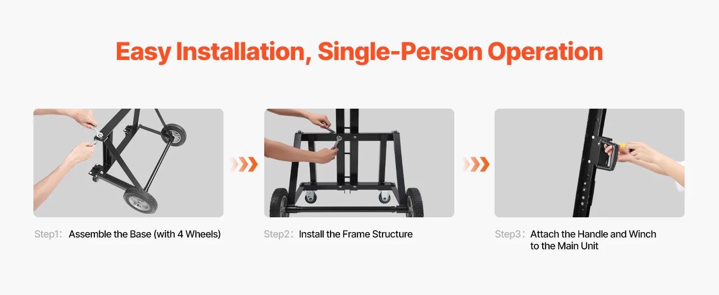 Dieser Lift ist mit einer Hauptstange aus hochhartem Stahl, einem arbeitssparenden Windendesign, einer robusten Basis und Rädern ausgestattet und gewährleistet Stabilität, Haltbarkeit und Sicherheit.