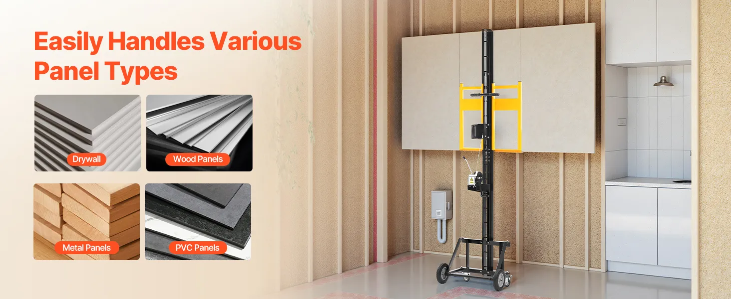 Dieser Lift kann problemlos mit verschiedenen Materialien umgehen, darunter Trockenbauwände, Holzpaneele, Metallbleche, PVC-Platten und mehr, und erfüllt so Ihre vielfältigen Renovierungsanforderungen.