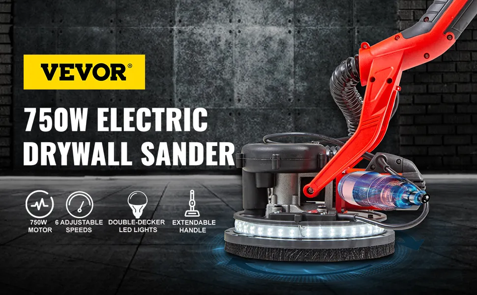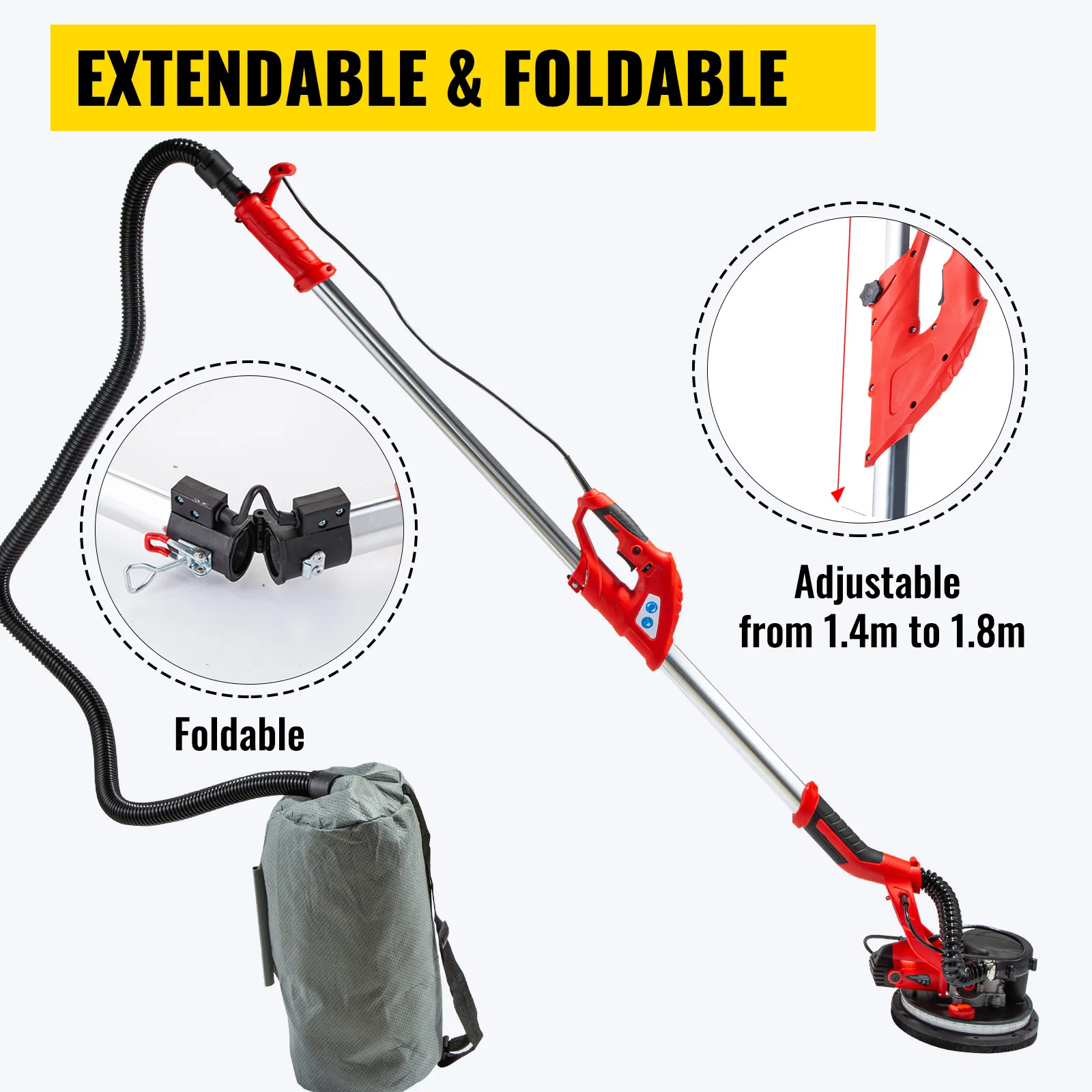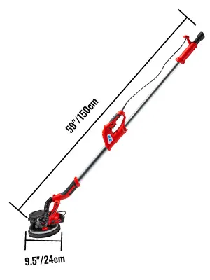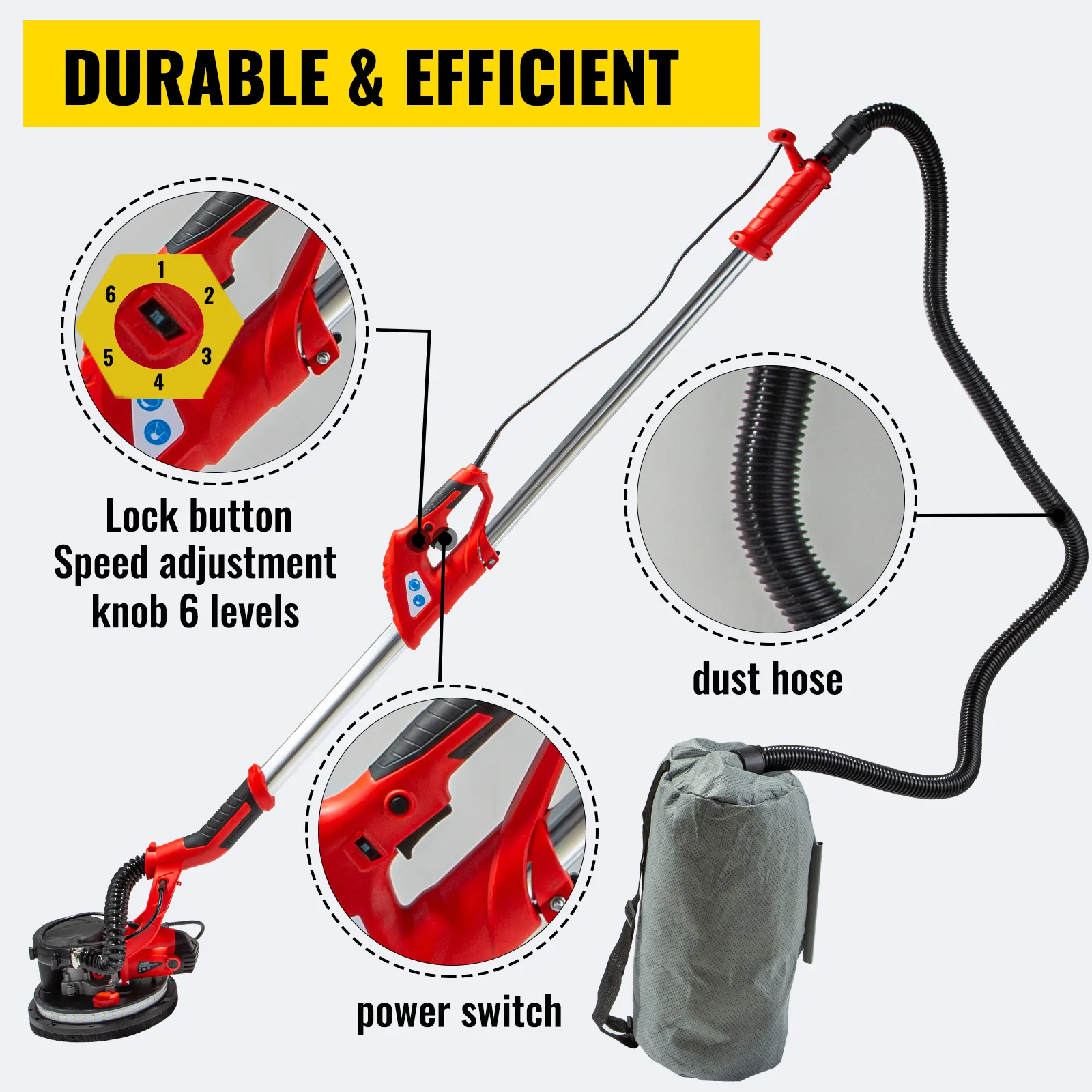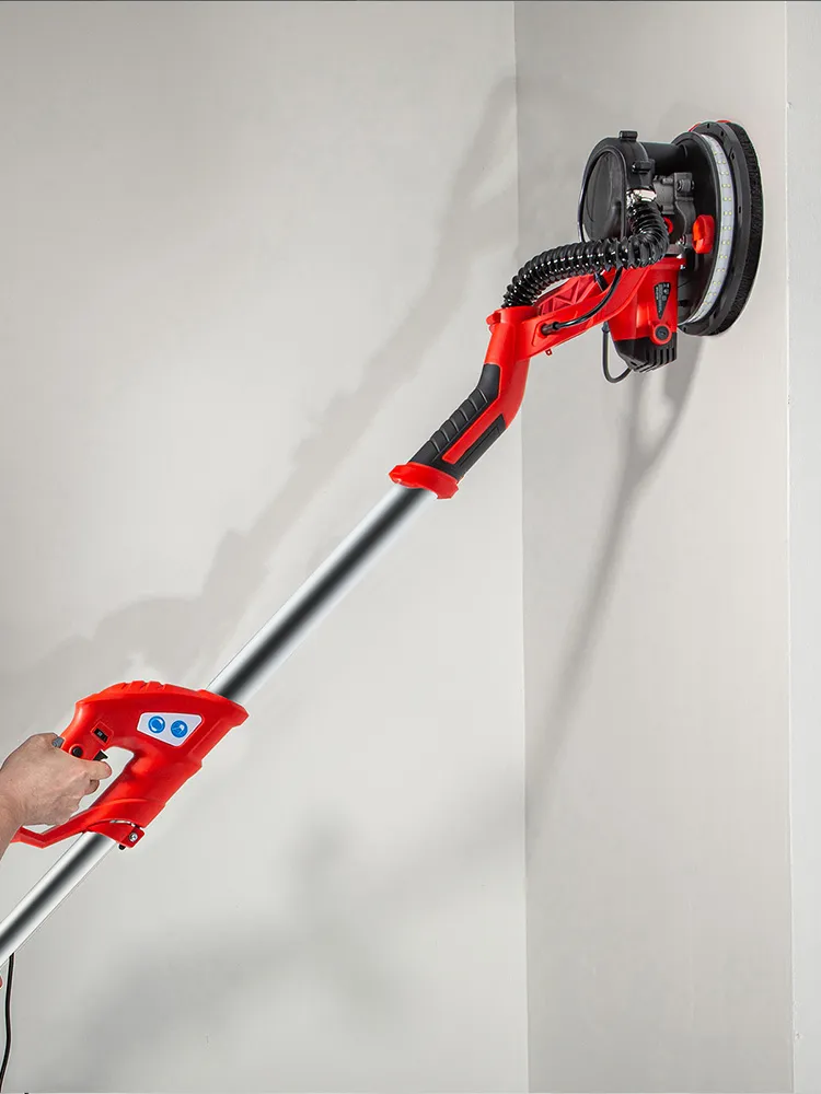 Dieser elektrische Trockenbauschleifer eignet sich für Anfänger, Haushalte oder professionelle Schleifarbeiten. Es ist robust und robust mit einem Metallkörper. Es bietet eine effiziente Schleifleistung mit einem großen Motor und einer einstellbaren variablen Geschwindigkeit. Es ist einfach mit einem speziellen Teleskoprahmen und einem ergonomischen Design der Griffe zu bedienen. Glätten Sie Ihre Wand vor rauer Textur und unebenen Unebenheiten.