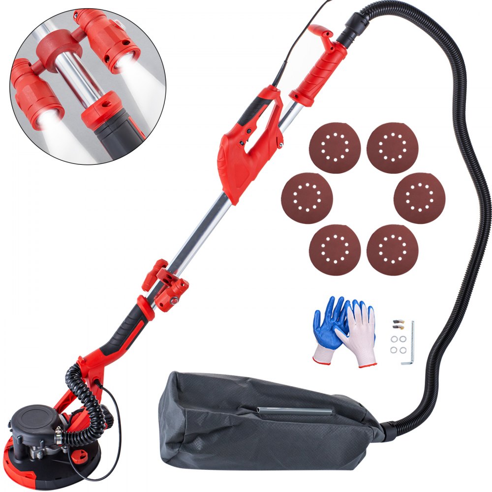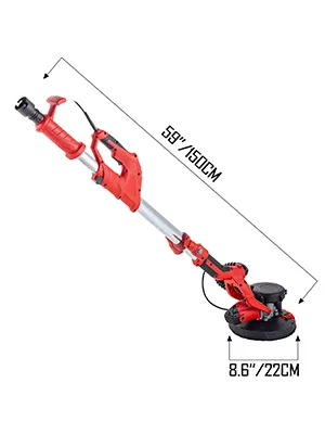 Dieser elektrische Trockenbauschleifer eignet sich für Anfänger, Haushalte oder professionelle Schleifarbeiten. Es ist robust und robust mit einem Metallkörper. Es bietet eine effiziente Schleifleistung mit einem großen Motor und einer einstellbaren variablen Geschwindigkeit. Es ist einfach mit einem speziellen Teleskoprahmen und einem ergonomischen Design der Griffe zu bedienen. Glätten Sie Ihre Wand vor rauer Textur und unebenen Unebenheiten.